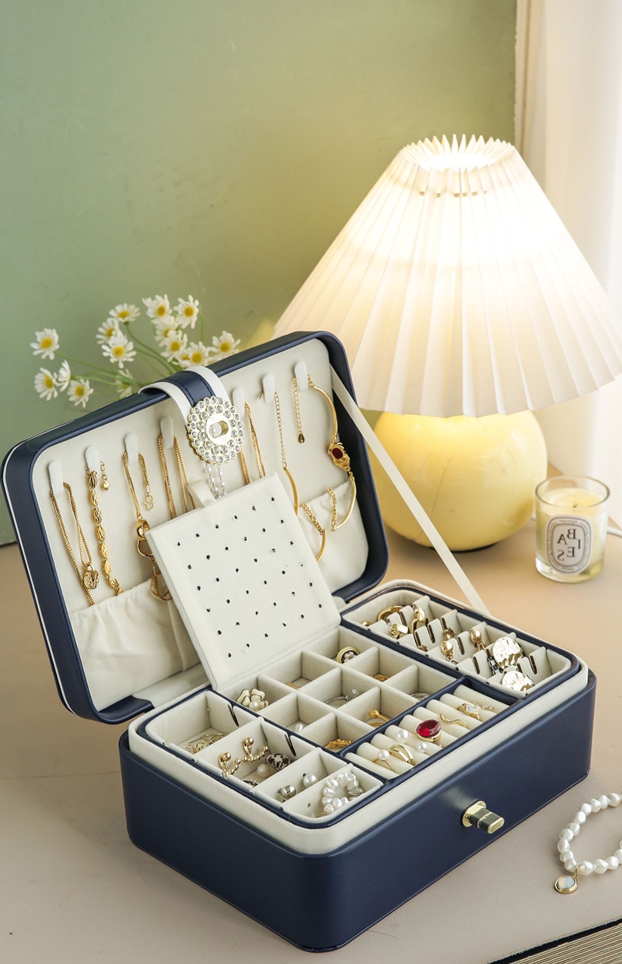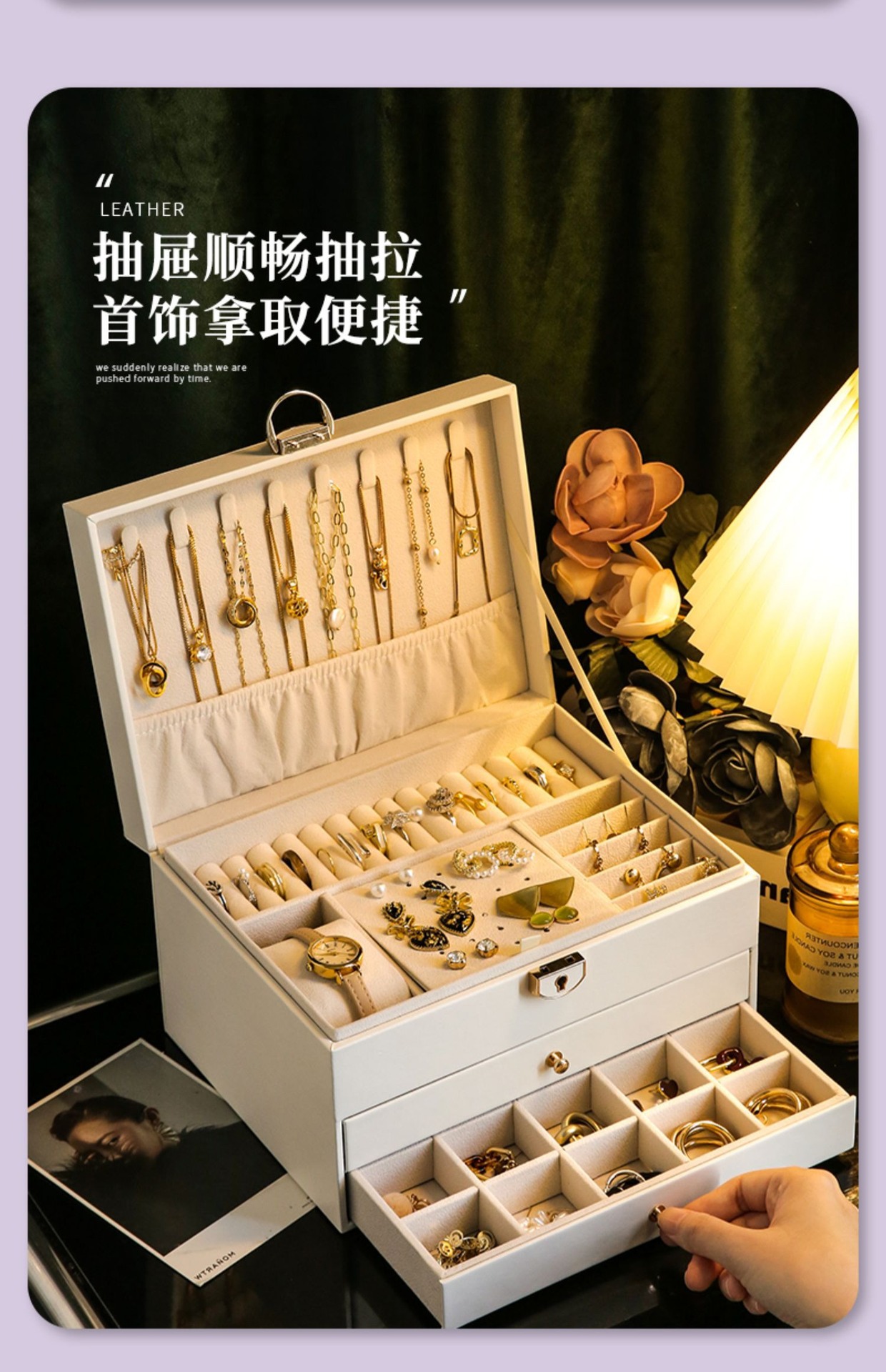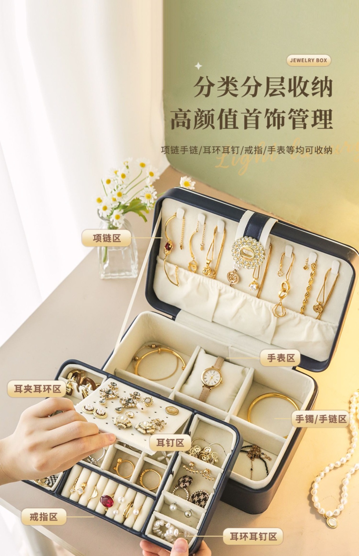 upgraded-white double layer jewelry box