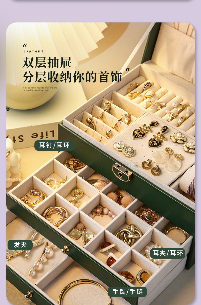 upgraded-brown double-layer jewelry box