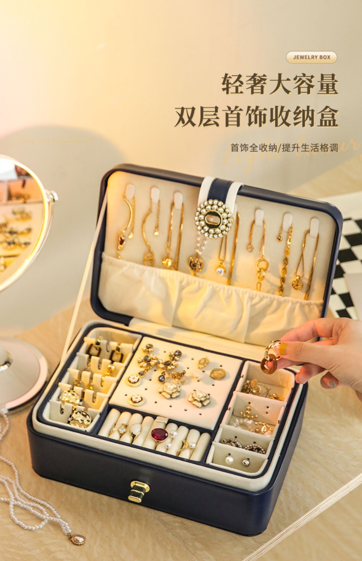upgraded version-black double layers jewelry box