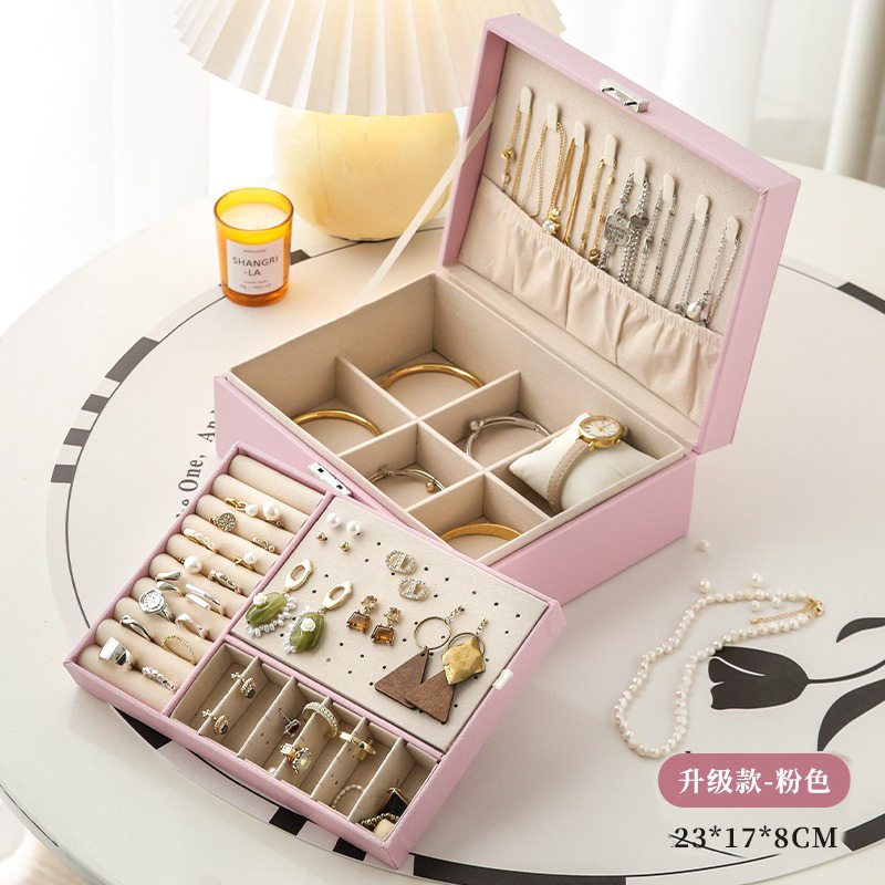 upgraded version-pink two-tier jewelry box