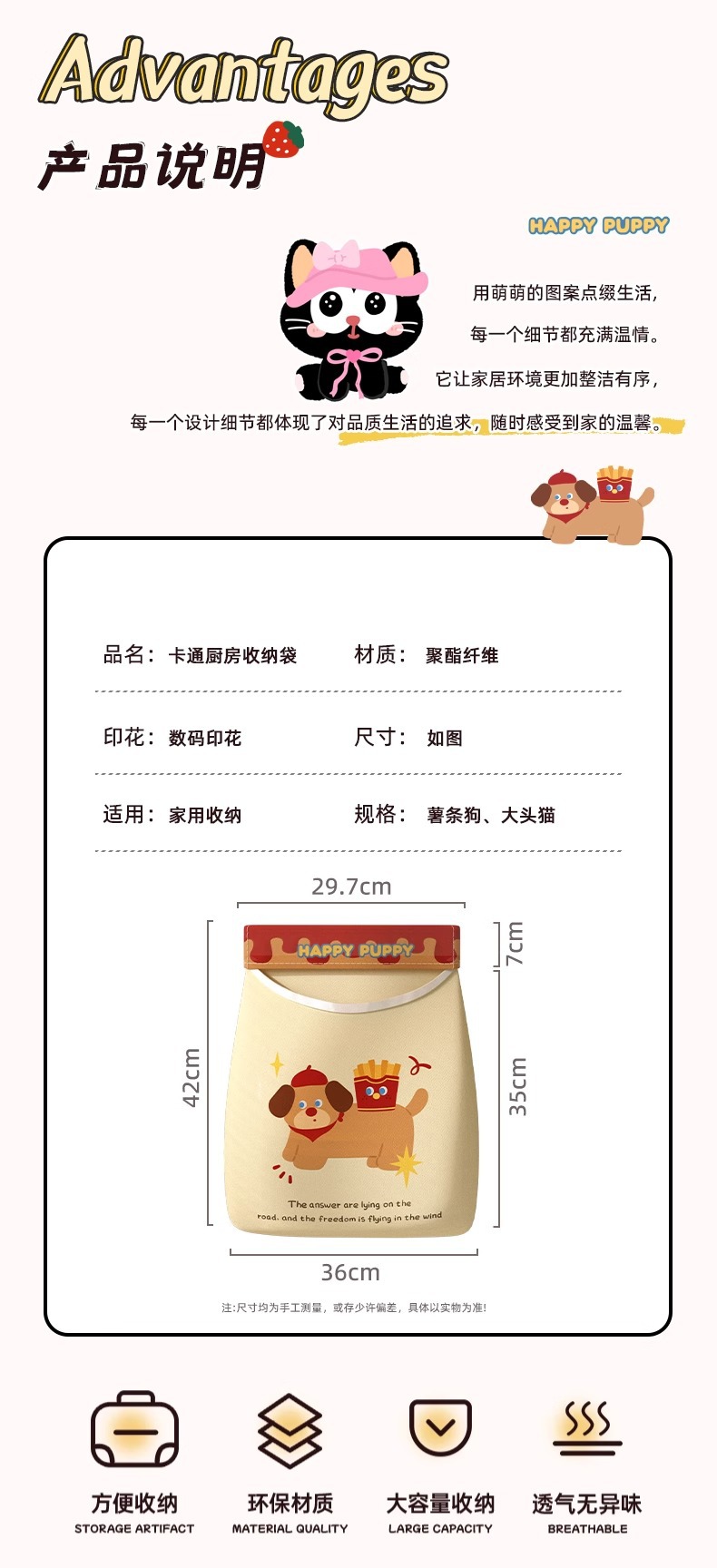 [single pocket one-piece packed] french fries dog-wide opening design/extra large capacity