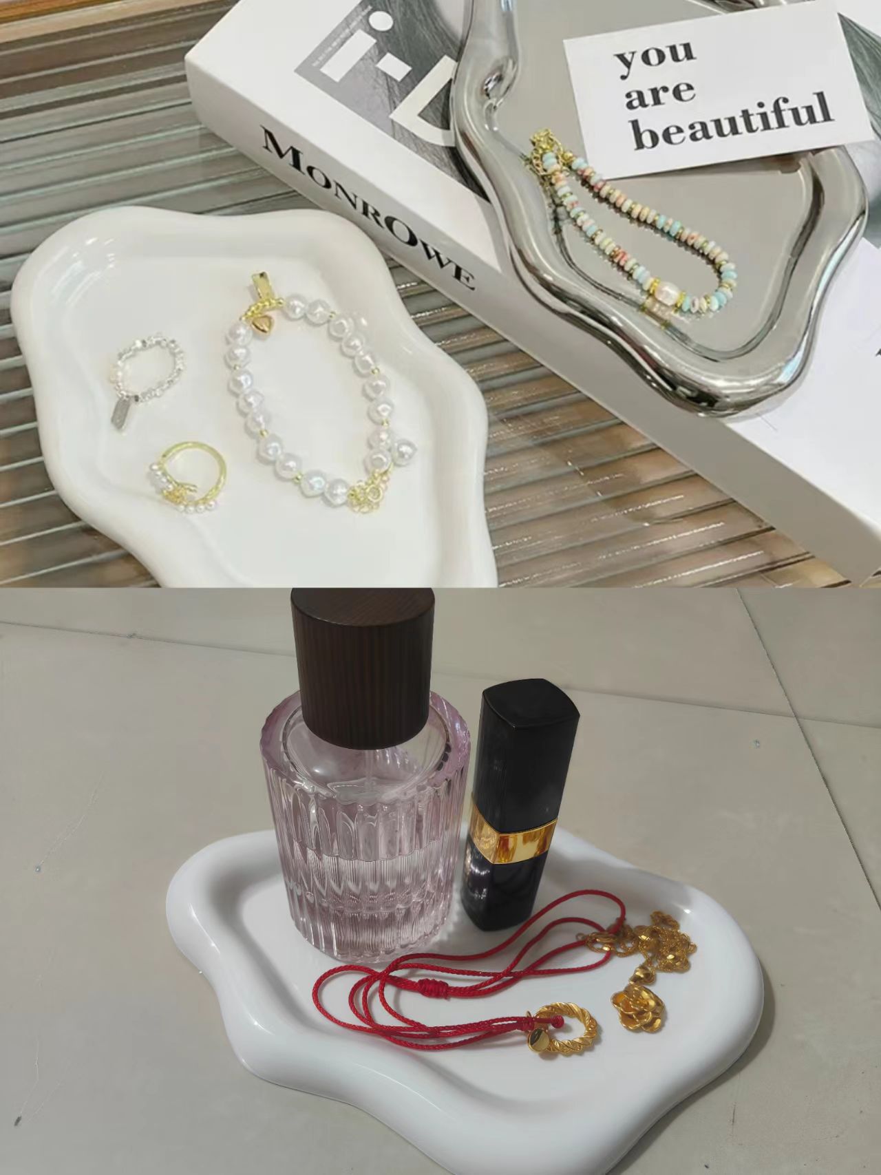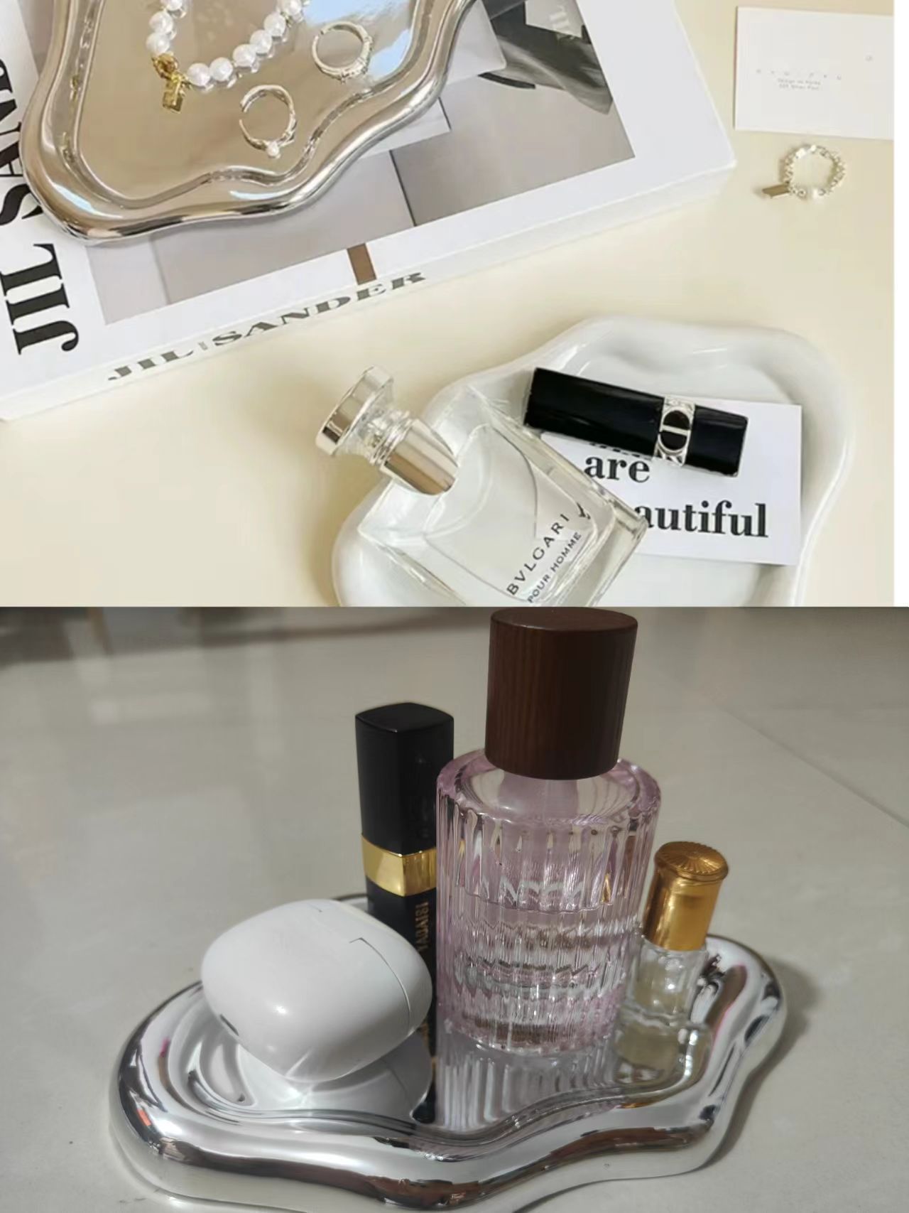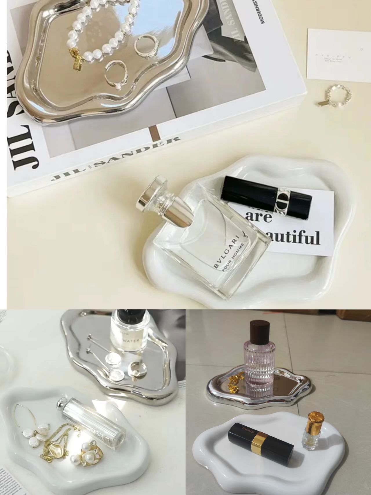 white-jewelry tray, silver electroplated-jewelry tray, pink-
