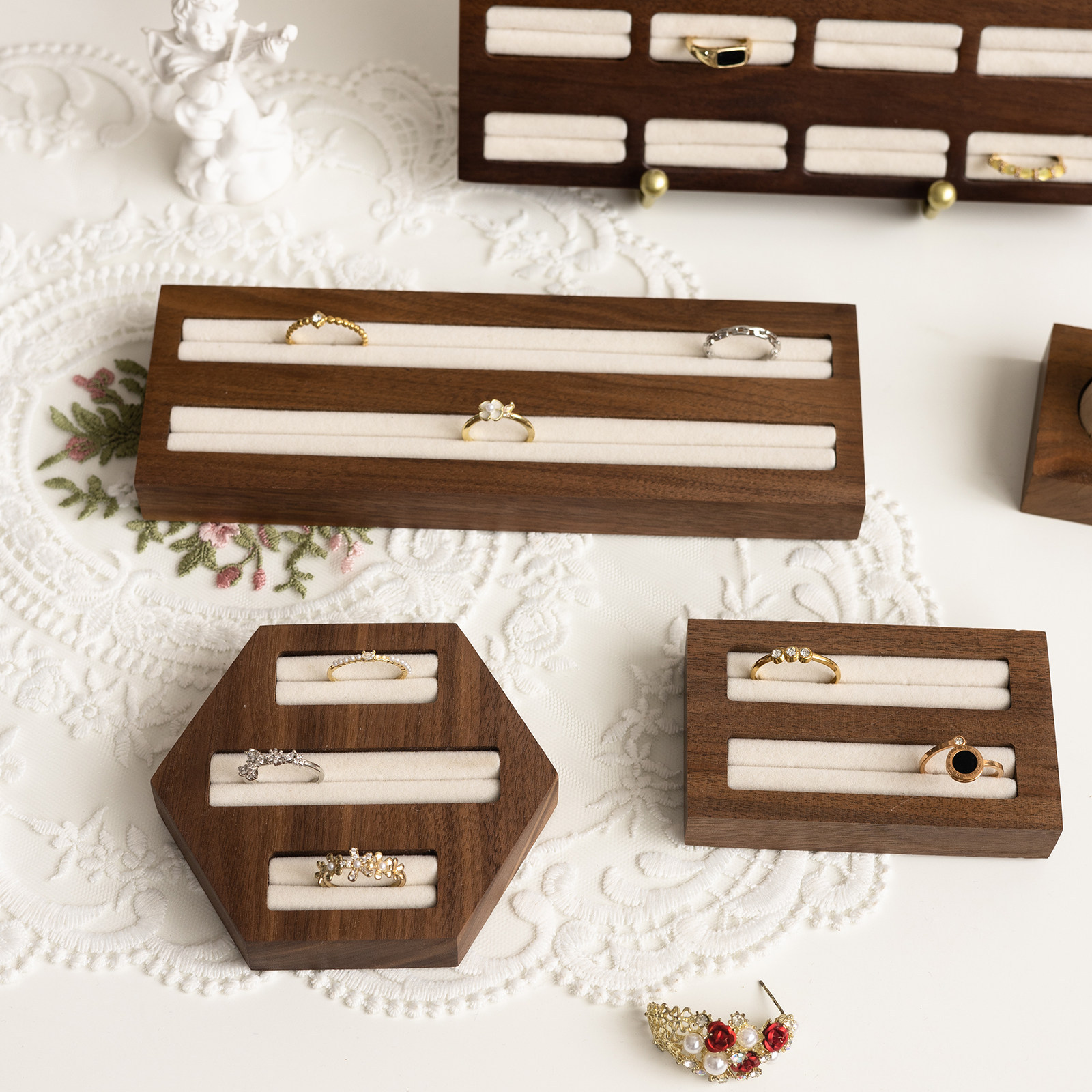 walnut m velvet hexagon 3 slots