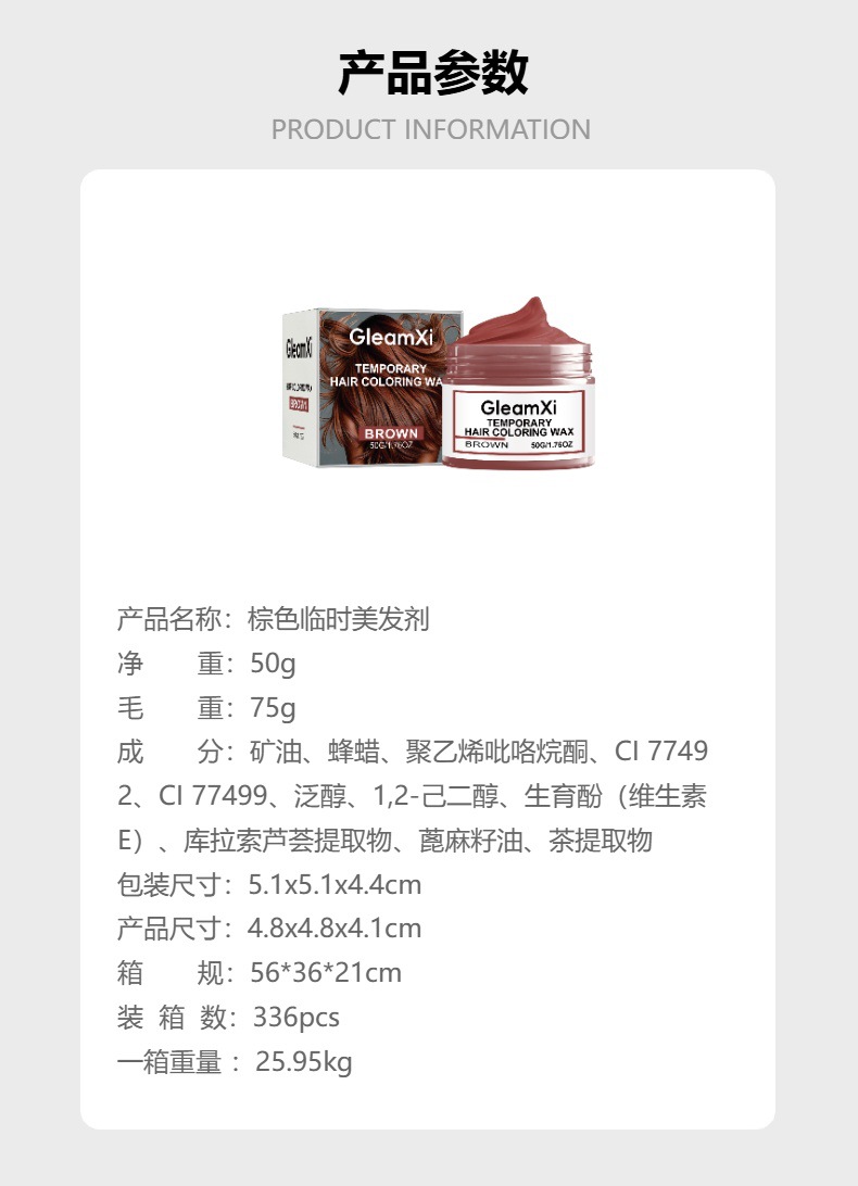 gleamxi brown temporary hairdressing agent natural color rendering fashion party stage temporary colorful bright hair
