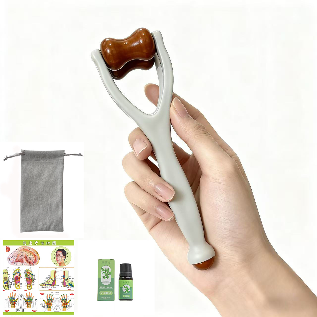 [solid wood roller] finger massager [send flannel bag] [send essential oil] [acupoint map]]