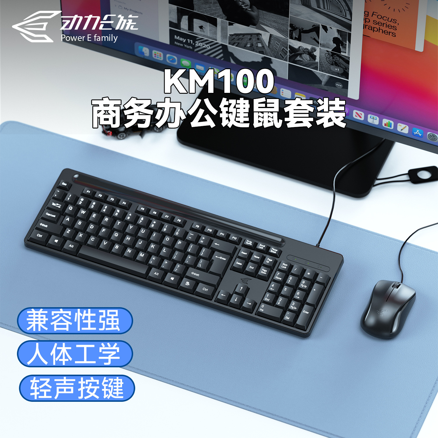 power e family km100 key mouse wired set