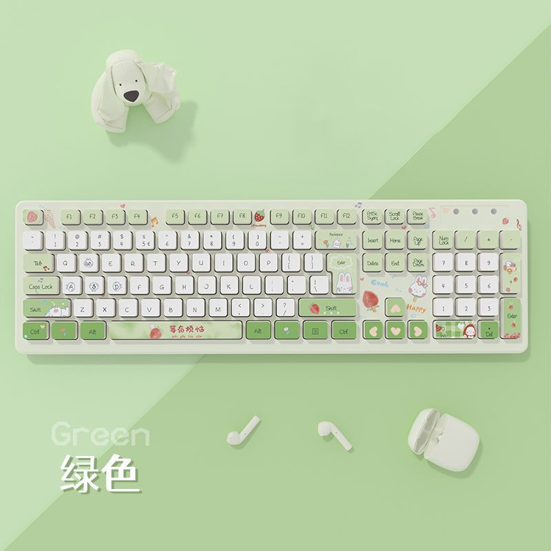 k-044 berry has worries-green-gaming and office dual-use mute keyboard [wireless type]