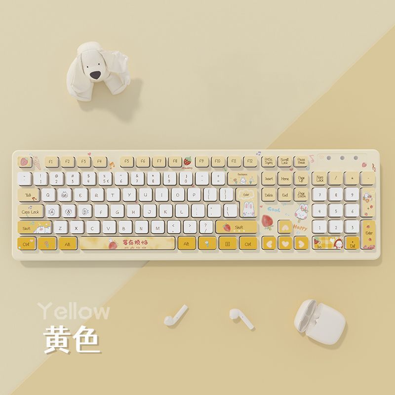 k-042 berry worry-yellow-dual-use mute keyboard for games and office [wireless type]]