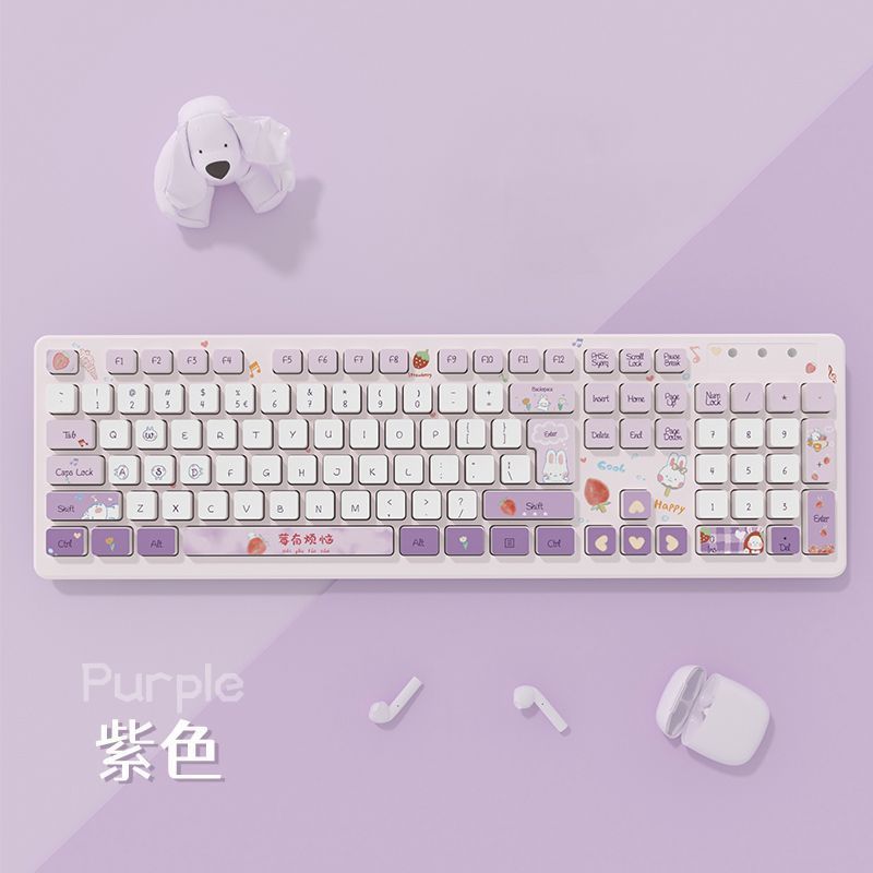 k-045 berry worry-purple-dual-use mute keyboard for games and office [wireless type]]