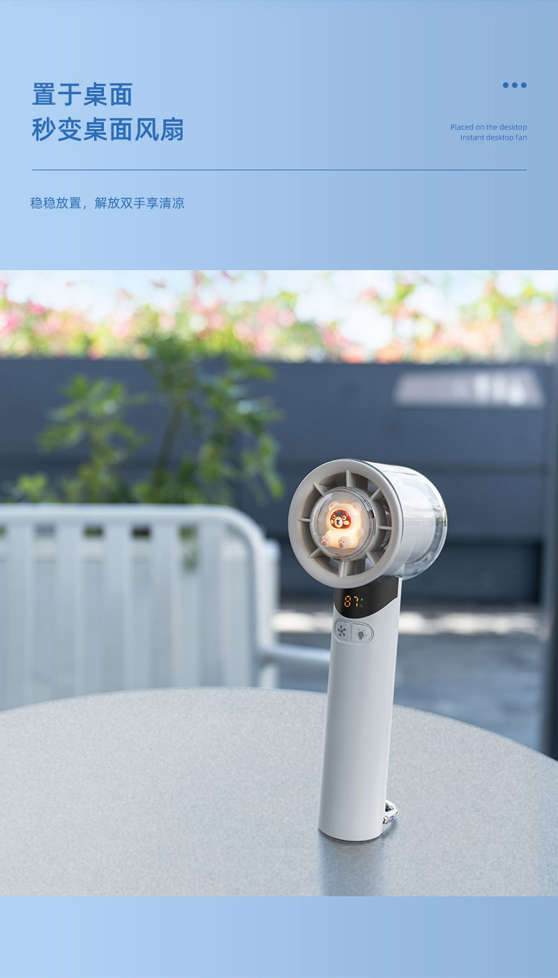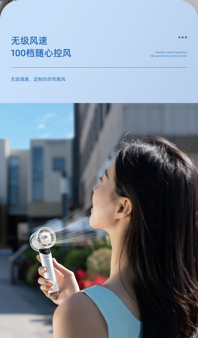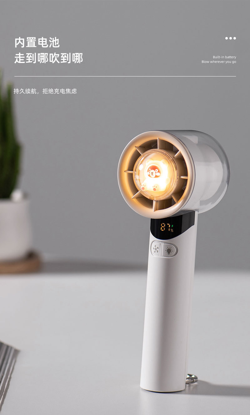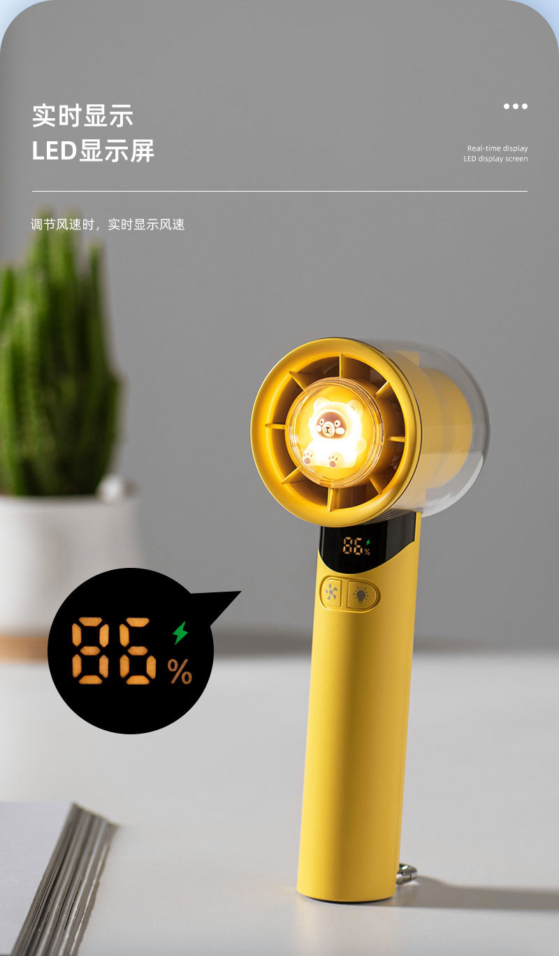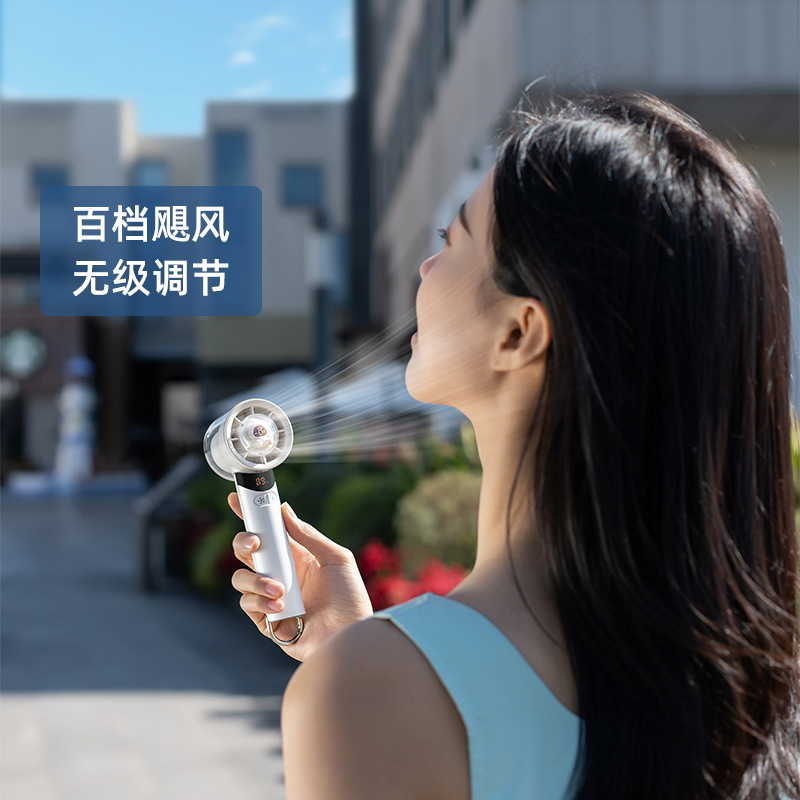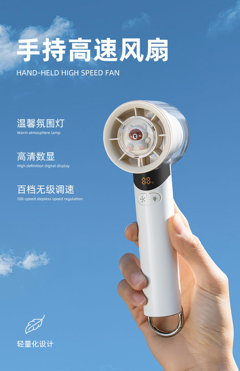 cross-border new arrival high-speed handheld fan outdoor portable climbing button carabiner turbine digital display hundred gear doll with light little fan