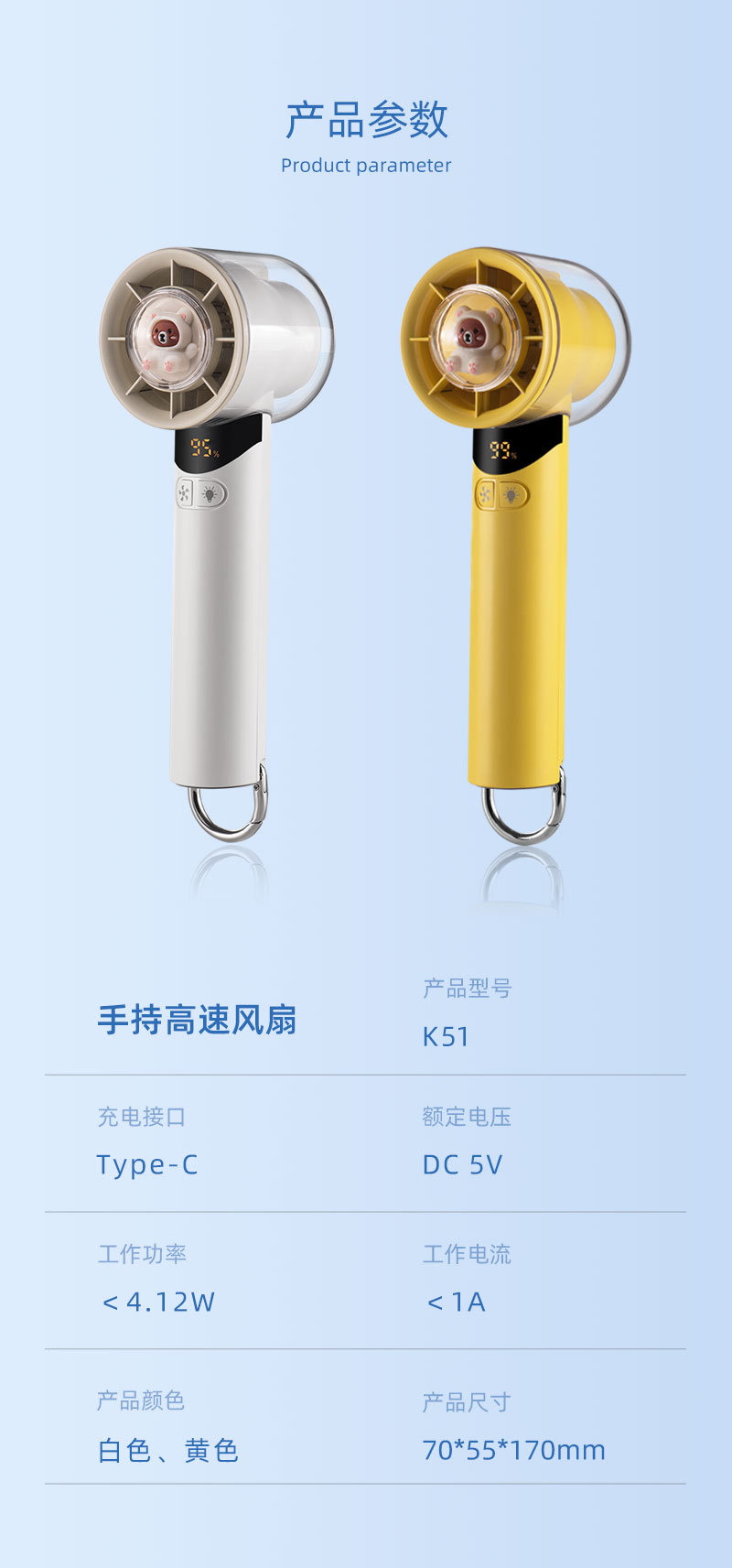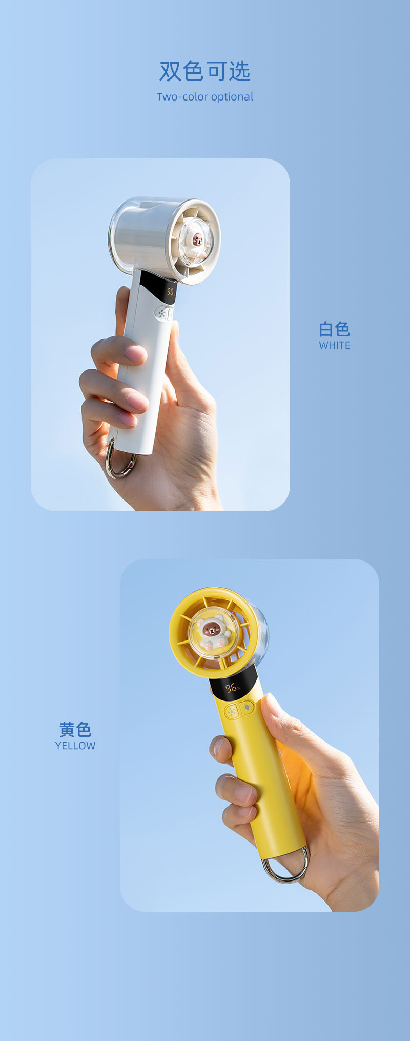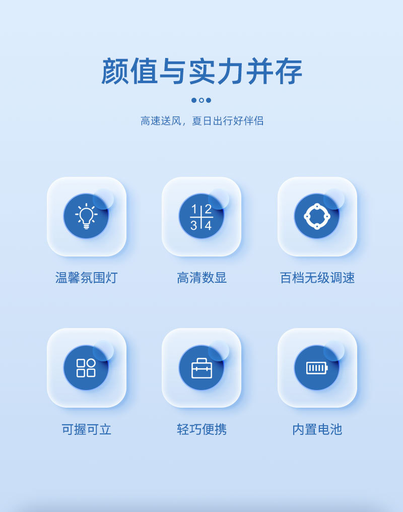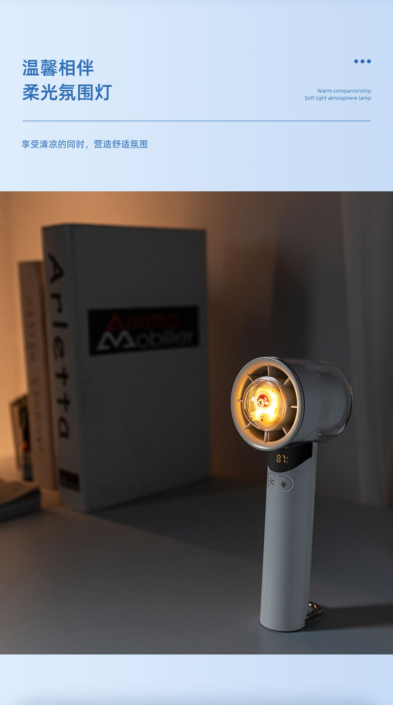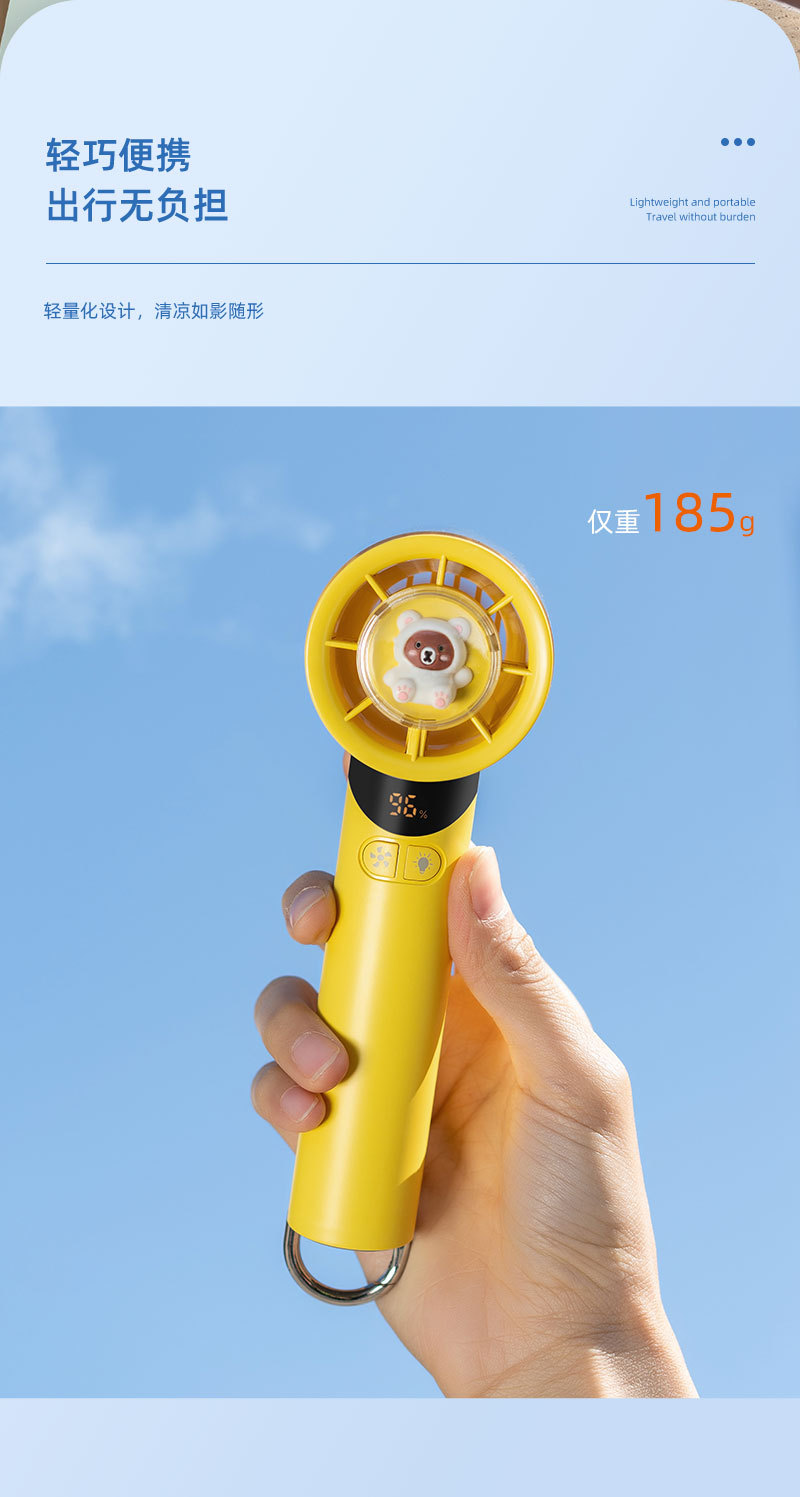 cross-border new arrival high-speed handheld fan outdoor portable climbing button carabiner turbine digital display hundred gear doll with light little fan