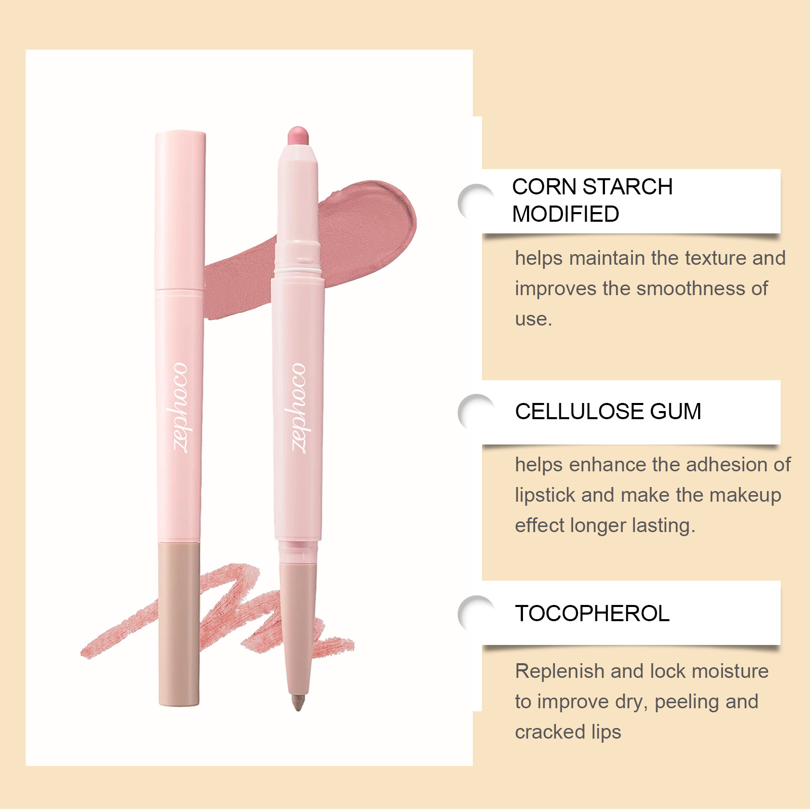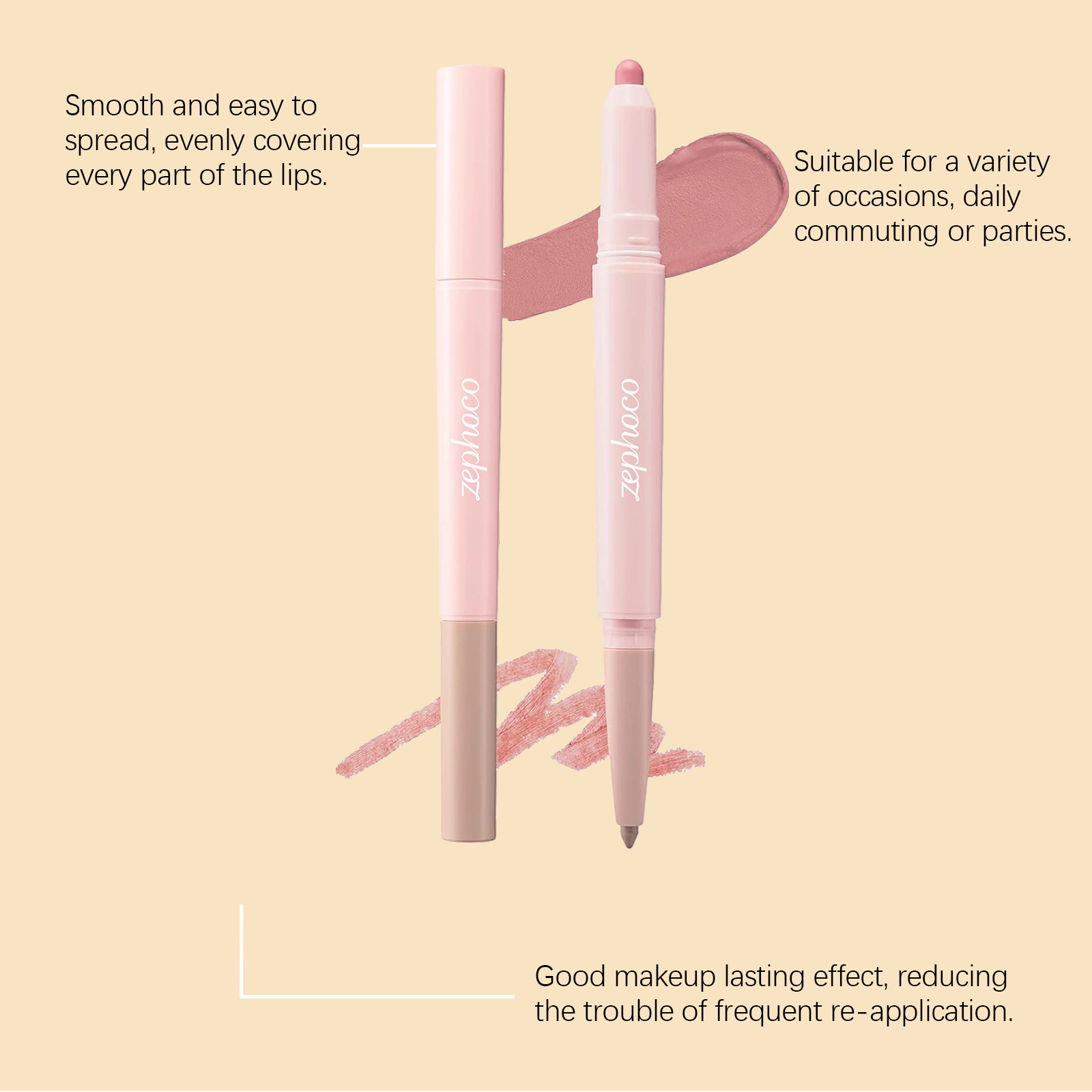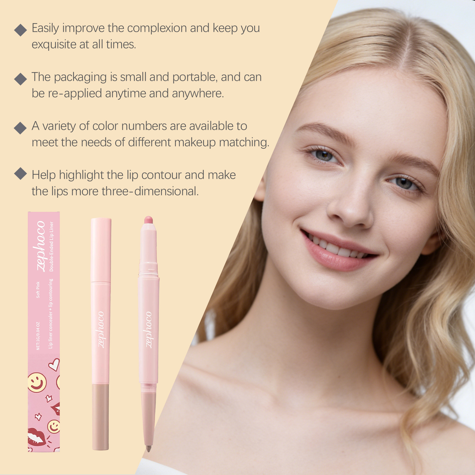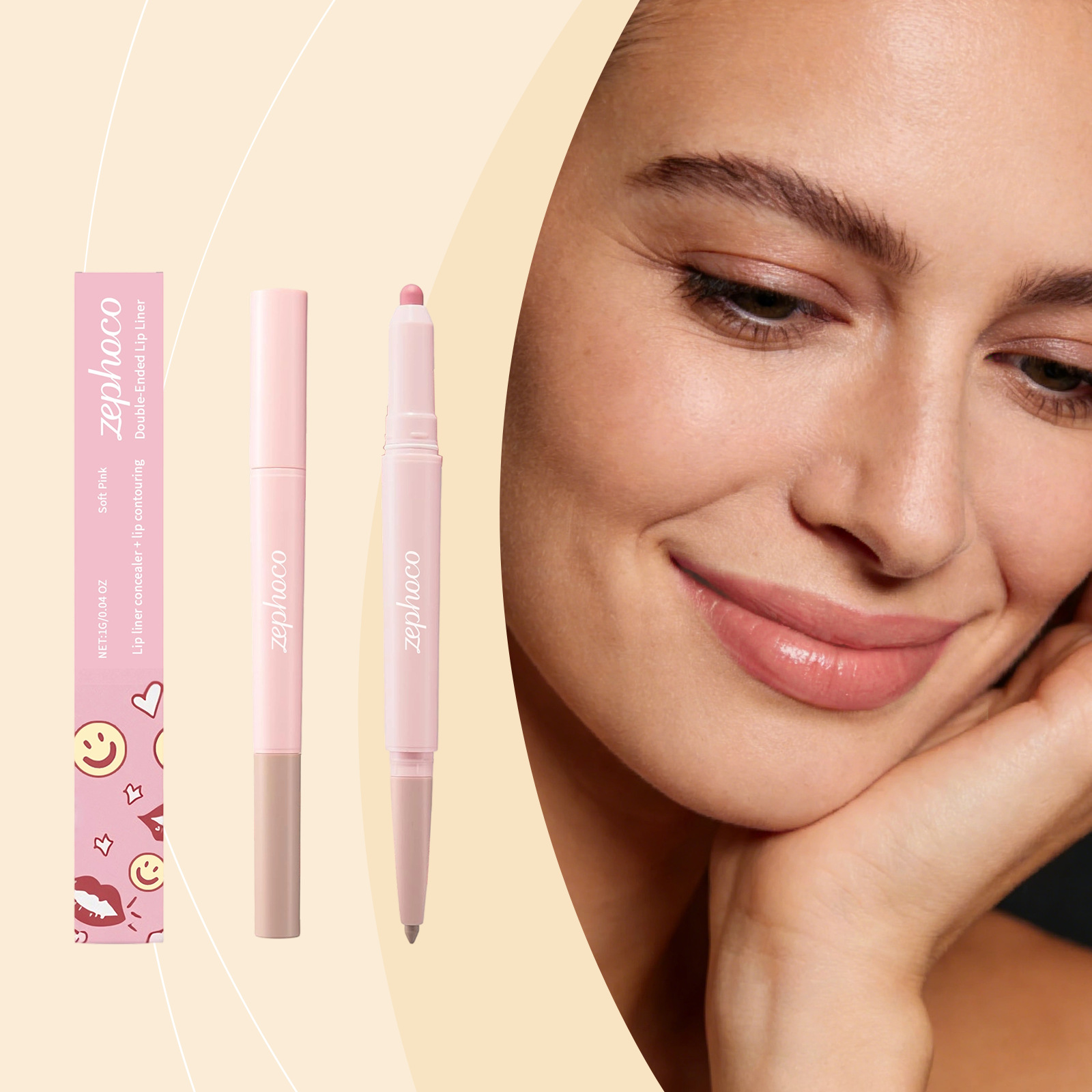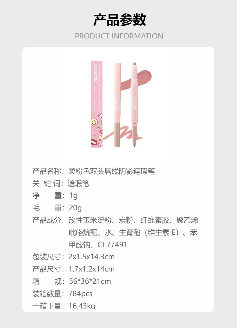 zephoco flesh color double-headed lip liner shadow concealer pen daily lip makeup natural easy to color smooth
