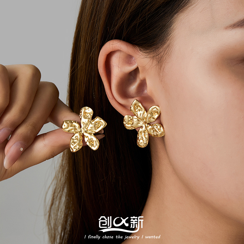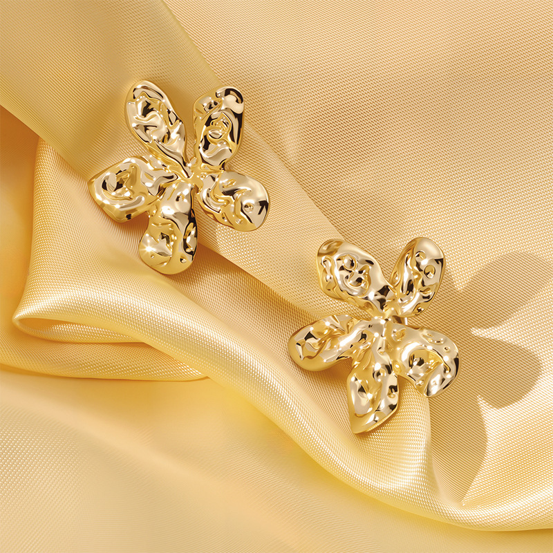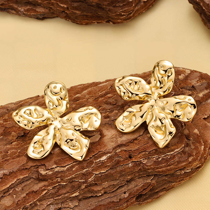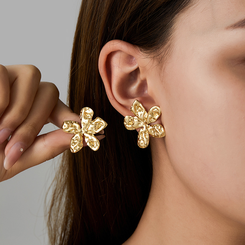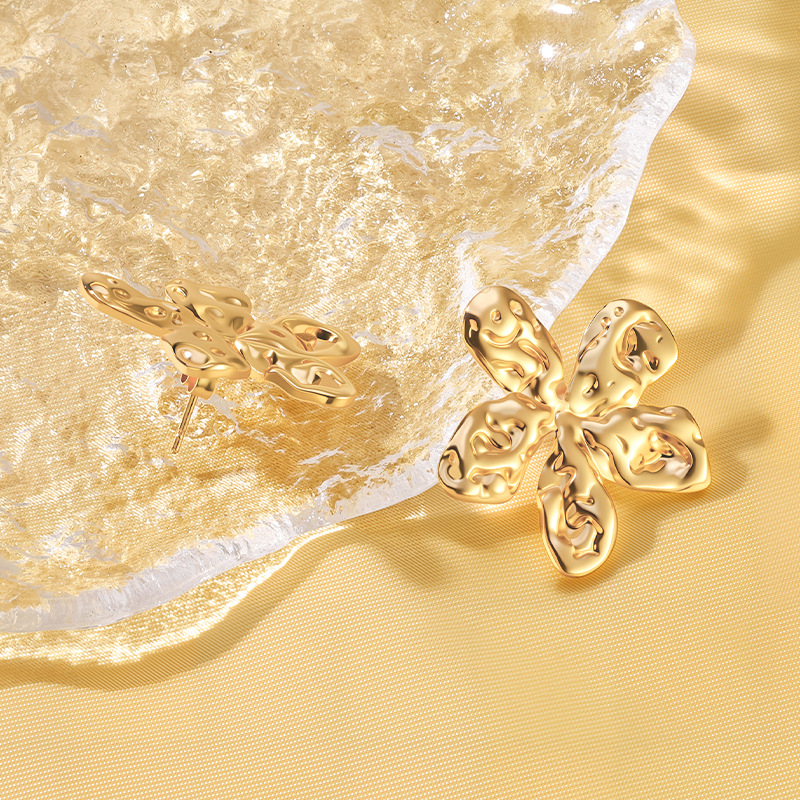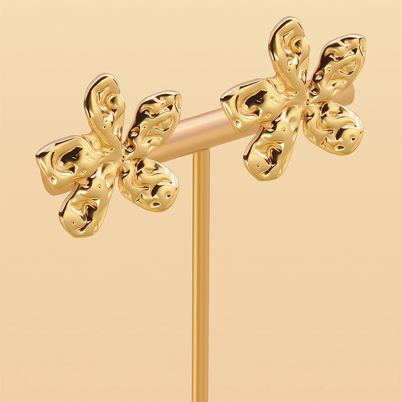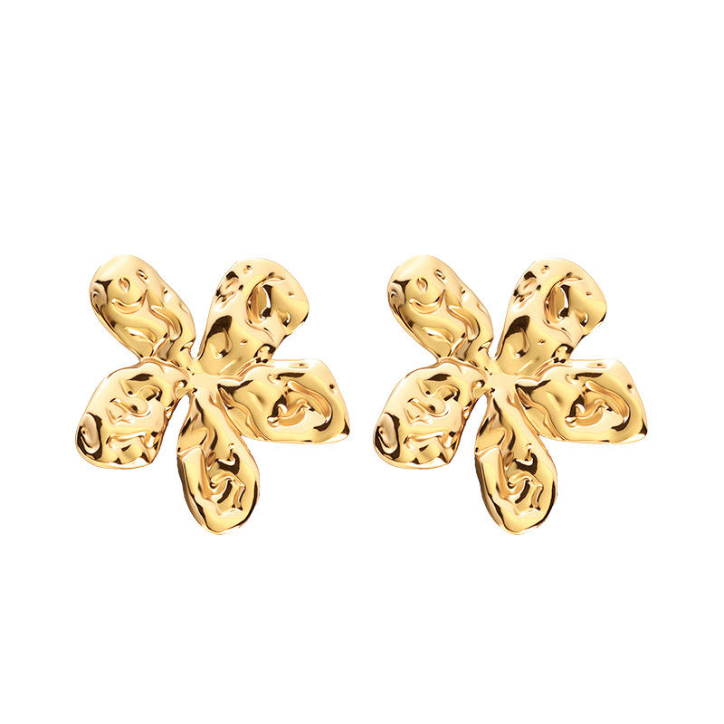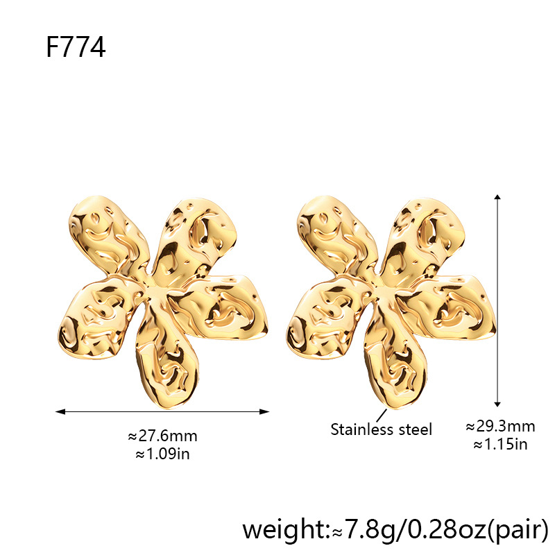 f774-gold-colored sun flower ear studs