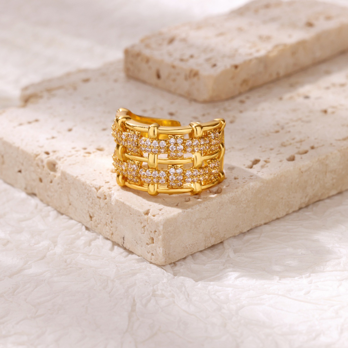 hot sale in europe and america full diamond ring cross-border fashion elegant open light luxury zircon fully-inlaid luxury diamond ring supply wholesale