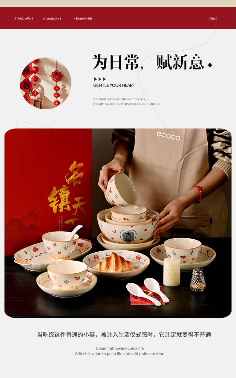 underglaze household good-looking ceramic cutlery bowl and plates wedding housewarming gift foreign trade export