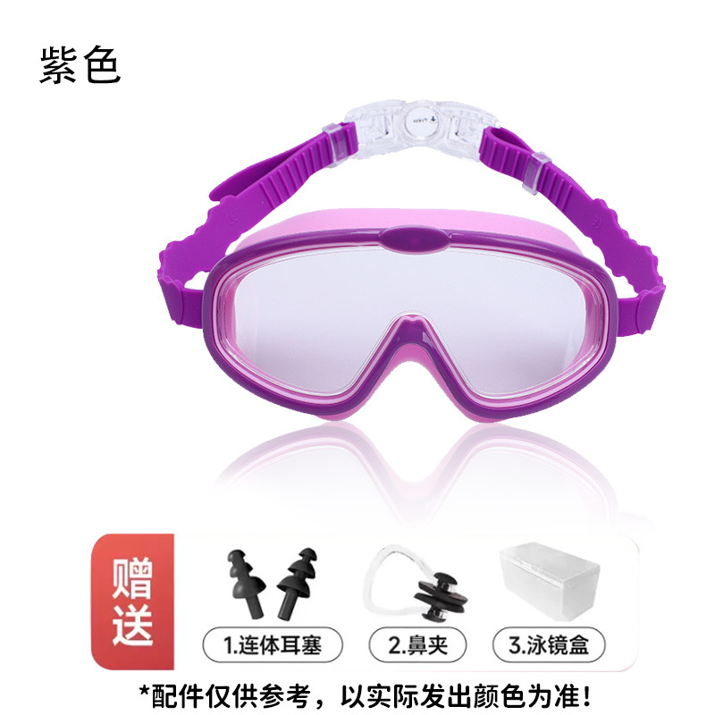 purple (apple mirror belt) swimming goggles + nasal splint earplugs + swimming goggle box