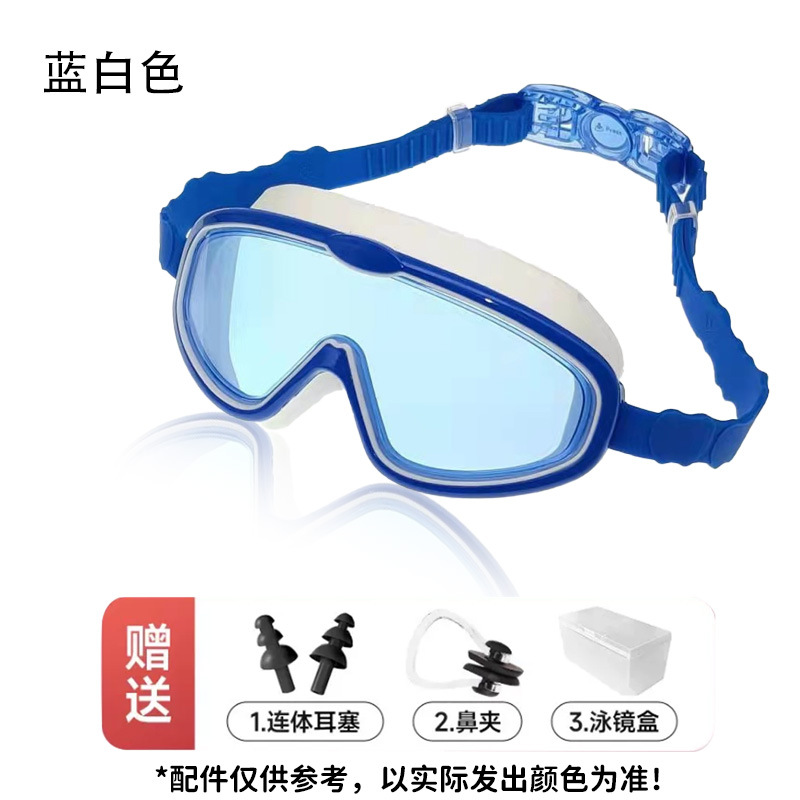 blue and white (apple goggles belt) swimming goggles + nasal splint earplugs + swimming goggle box