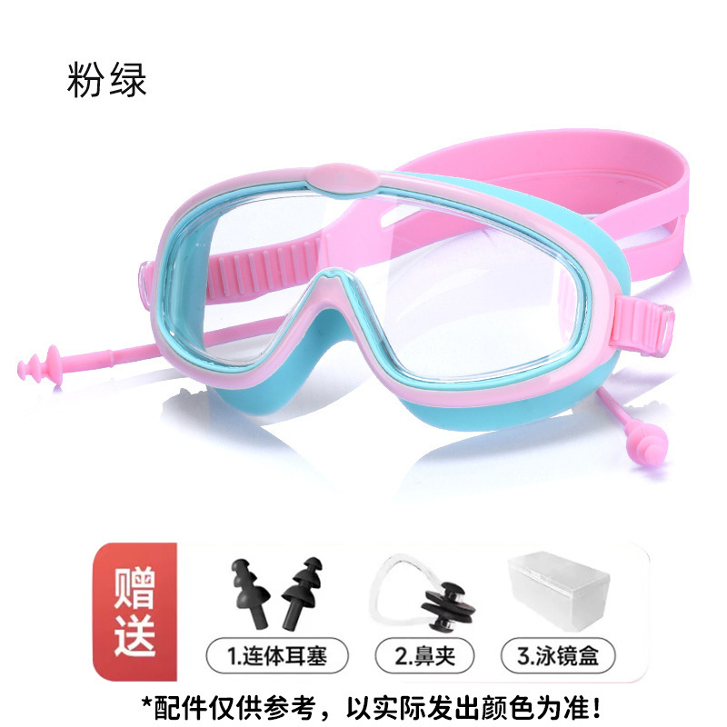 pink green goggles + nasal splint earplugs + swimming goggle box