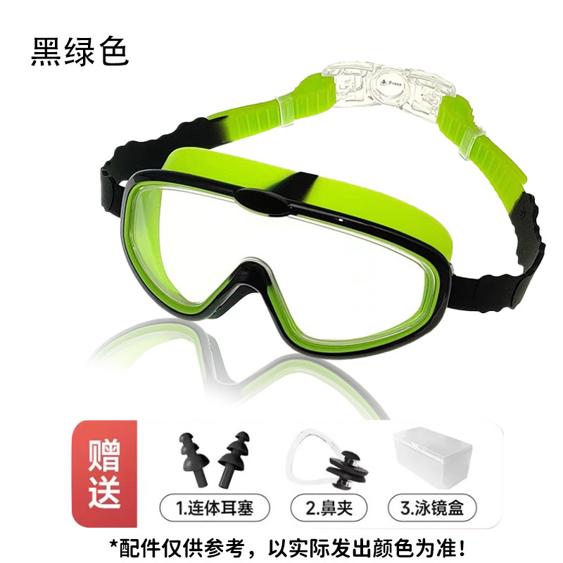 black and green (apple goggles belt) swimming goggles + nasal splint earplugs + swimming goggle box