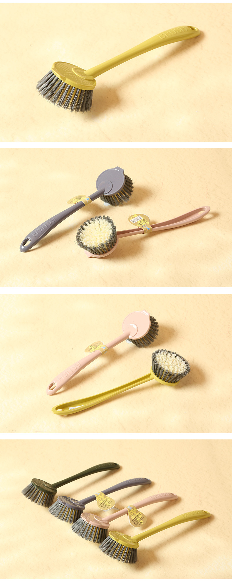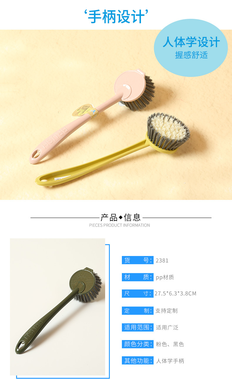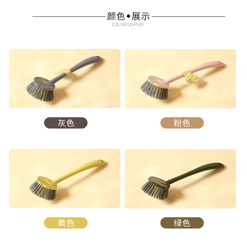 kitchen long handle solid color simple dishwashing brush hanging non-dirty hand decontamination sink cooktop cleaning brush dishwashing brush