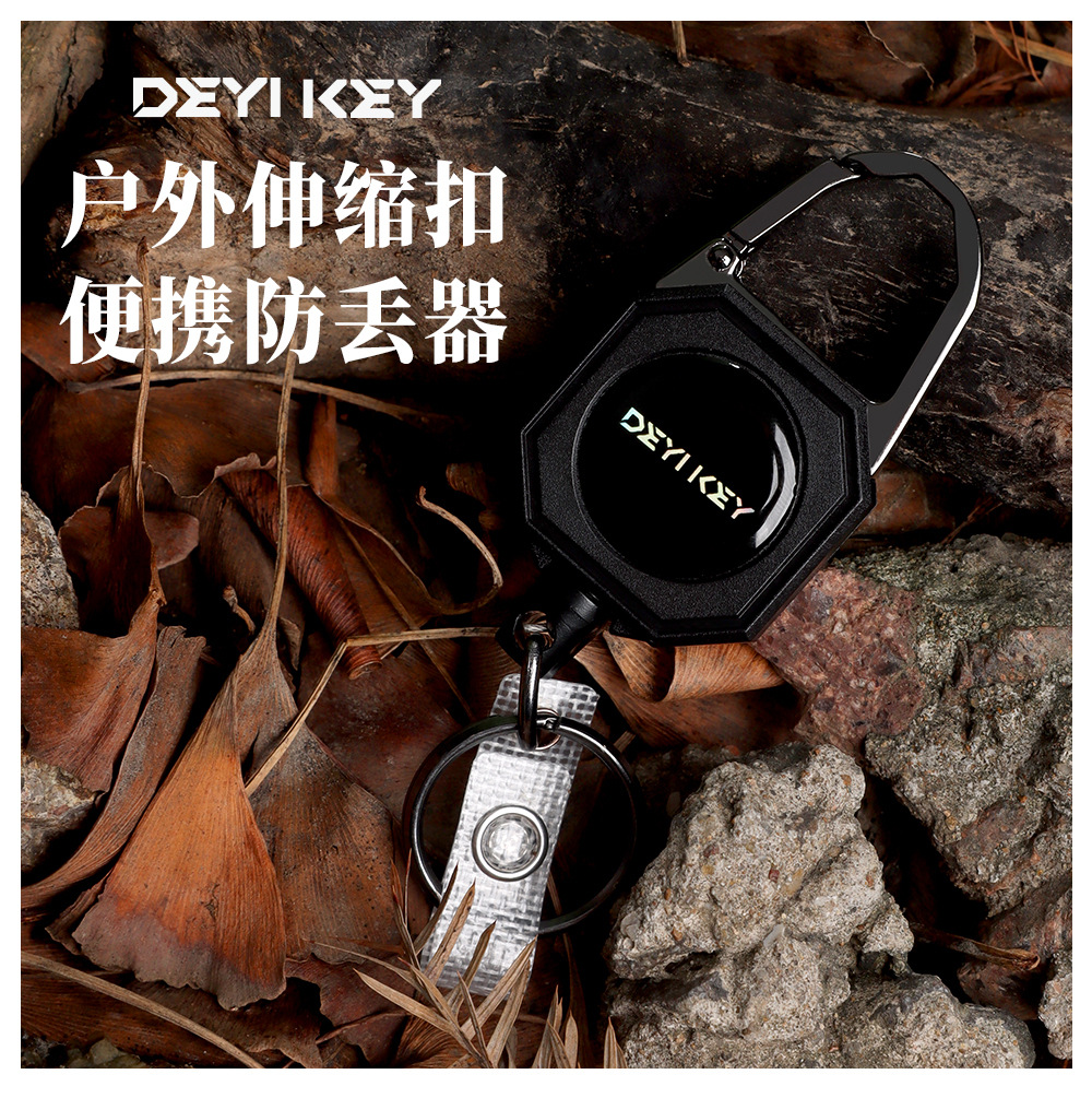 can buckle bold wire grip retractable key ring outdoor mountaineering anti-lost anti-theft plastic metal backpack keychain