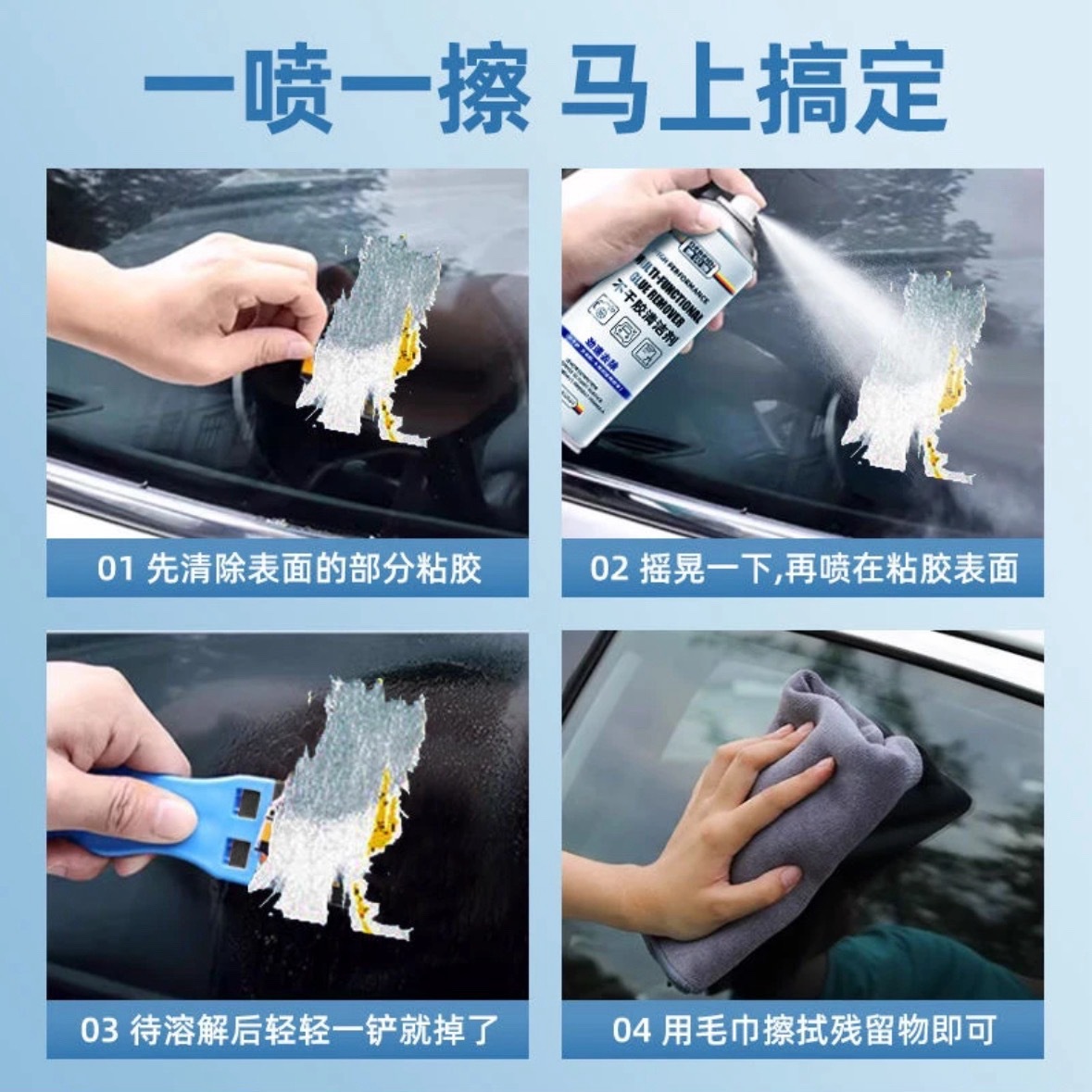 debedi white glue removal agent iron can 450 ml 3 bottles + glue removal shovel 1 pack + blue towel 30*30 1 pack