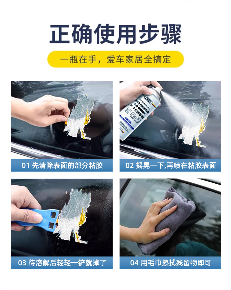 debedi white glue removal agent iron can 450 ml 1 bottle + glue removal shovel 1 pack + blue towel 30*30 1 pack
