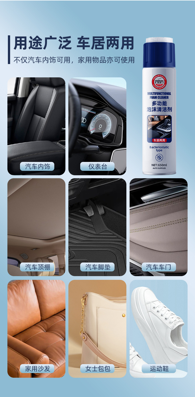 650ml foam cleaning agent * 3 + car wash towel * 1 + sponge wipe * 2 + cleaning soft gel * 2