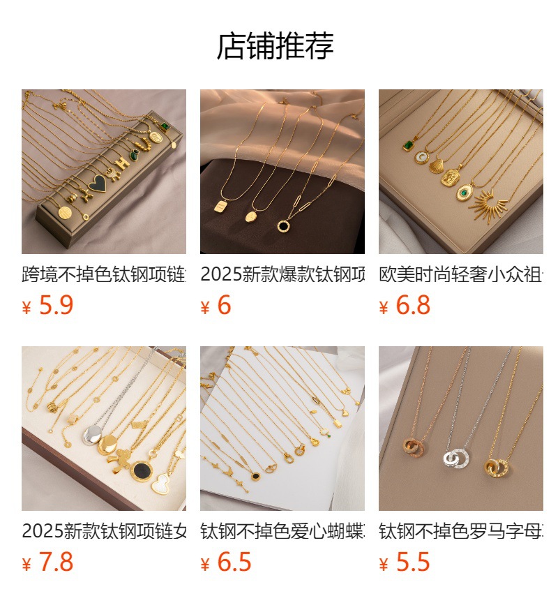golden titanium steel small square necklace