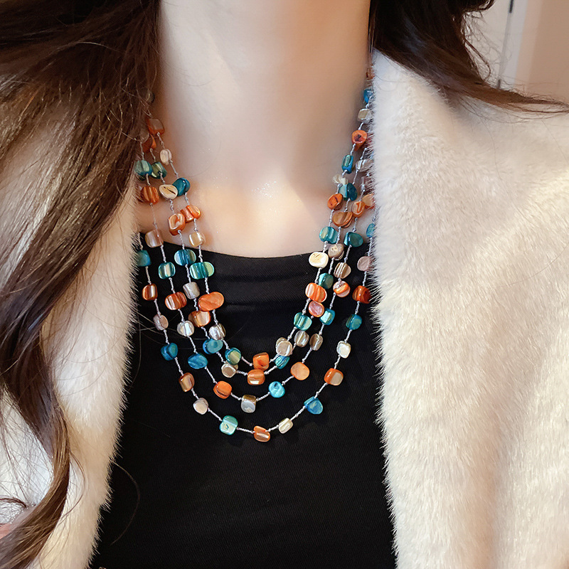 2# necklace-blue-orange-shell beads