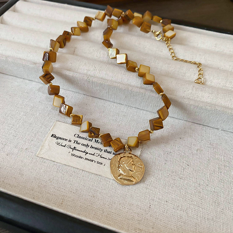 7# necklace-golden-coffee color-portrait round