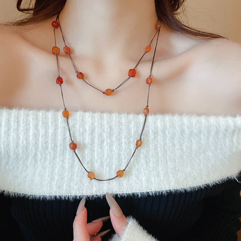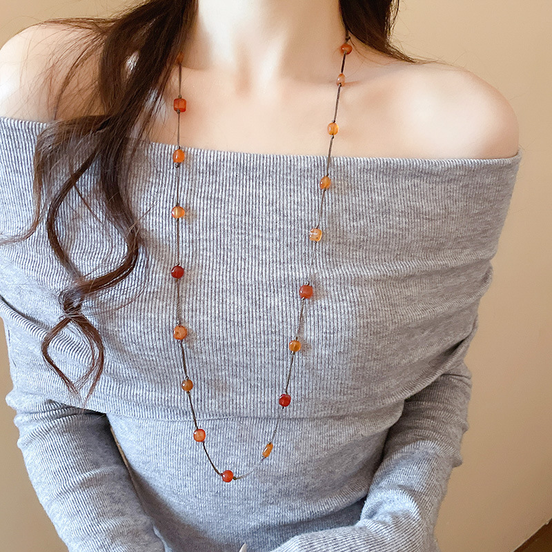 27# necklace-coffee color-red-square