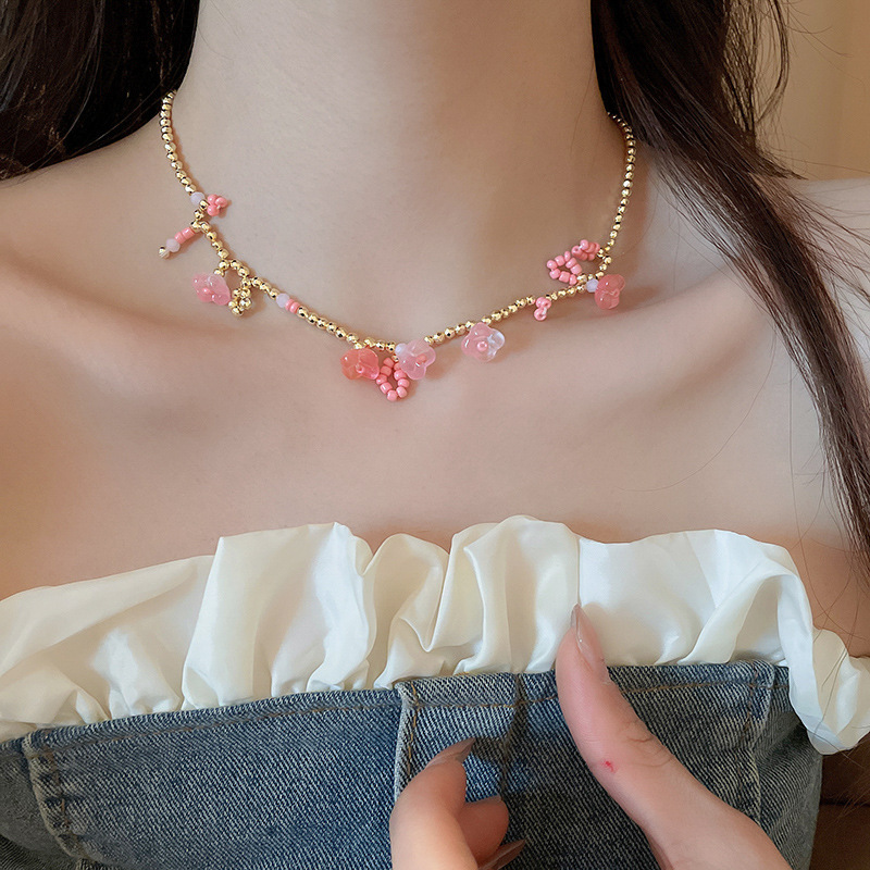 52# necklace-pink-flower necklace