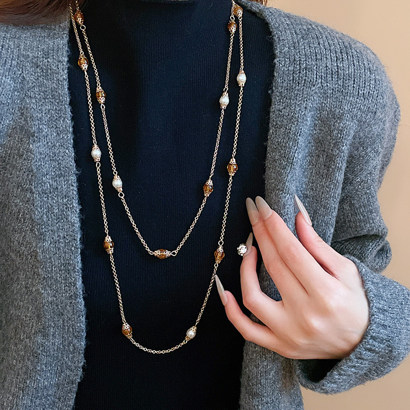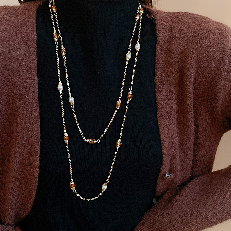 10# necklace-golden-caramel color-pearl