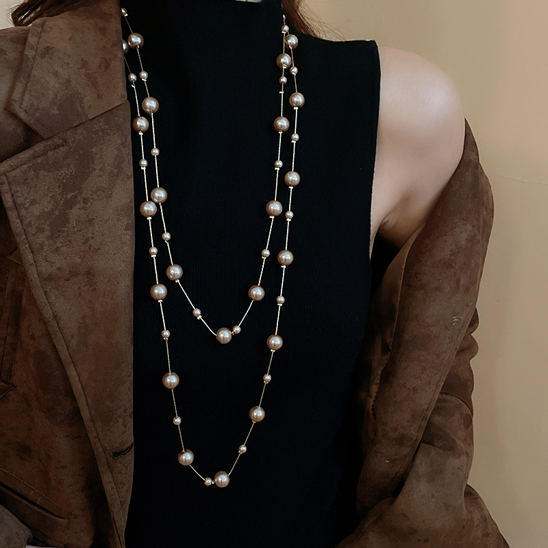 30# necklace-golden-coffee color-pearl 10mm