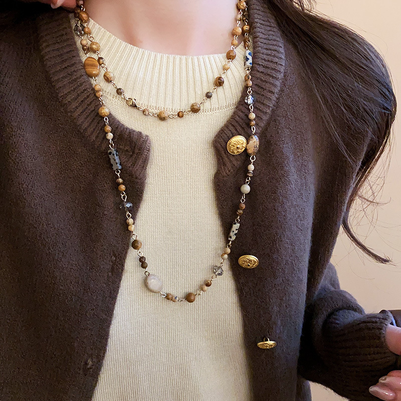 11# necklace-golden-coffee color-picture stone