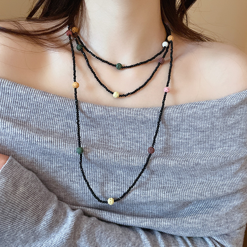 62# necklace-regular-black-flower-double-layer necklace