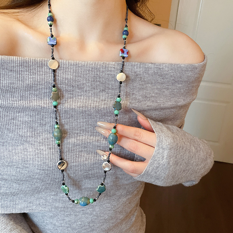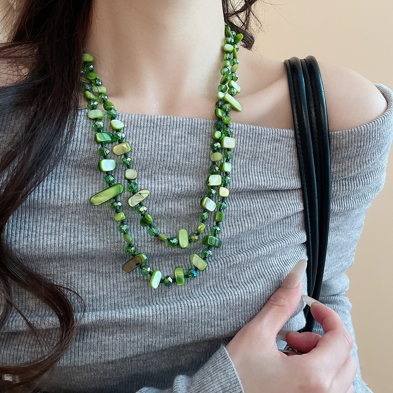 45# necklace-green-white bamboo joint-flower
