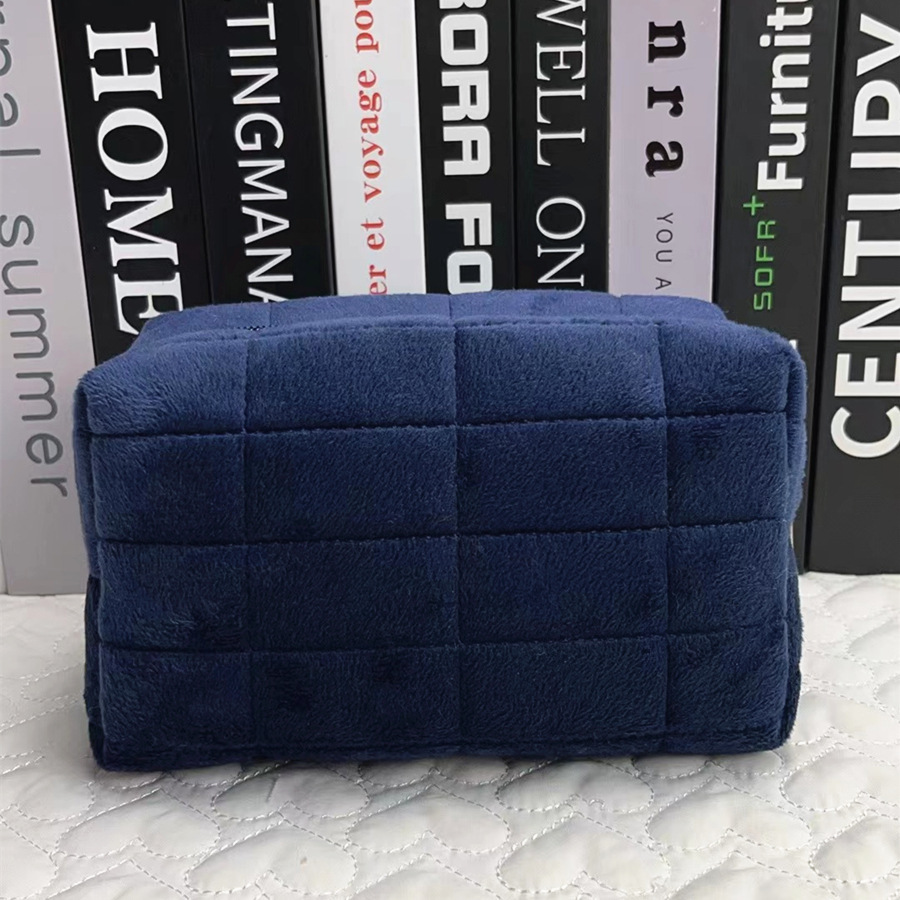diamond-quilted cosmetic bag navy blue