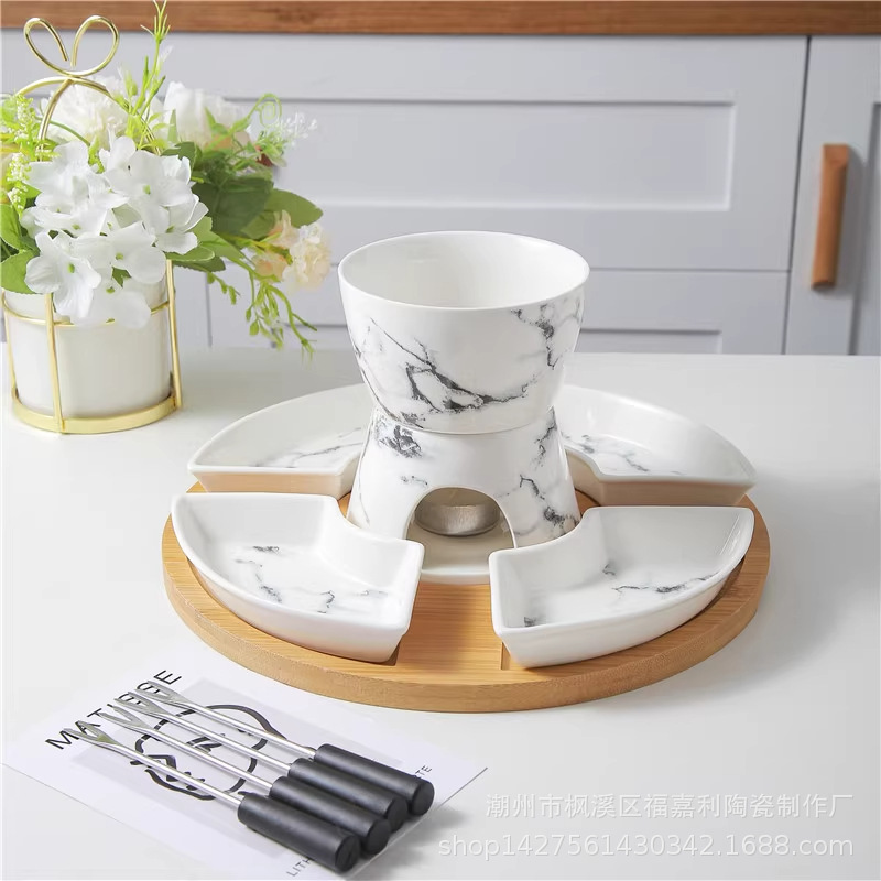 marbling hot pot +4 dishes + bamboo plate
