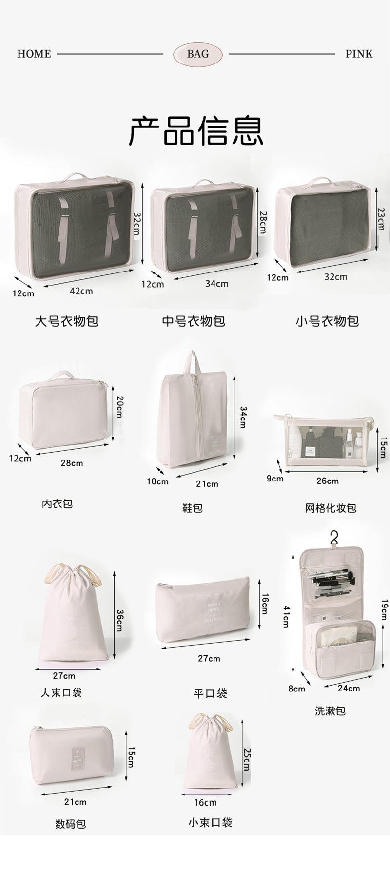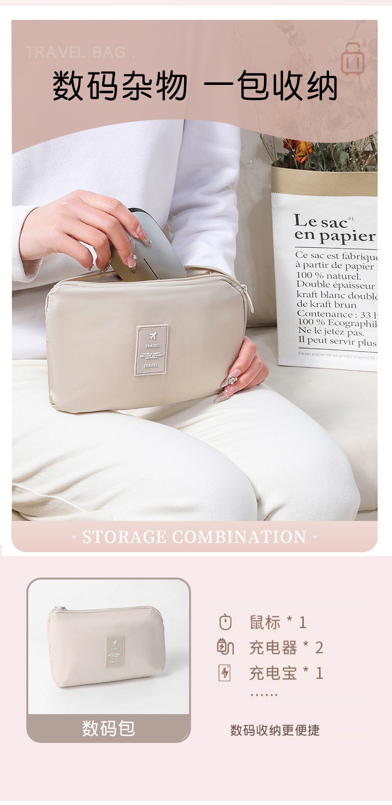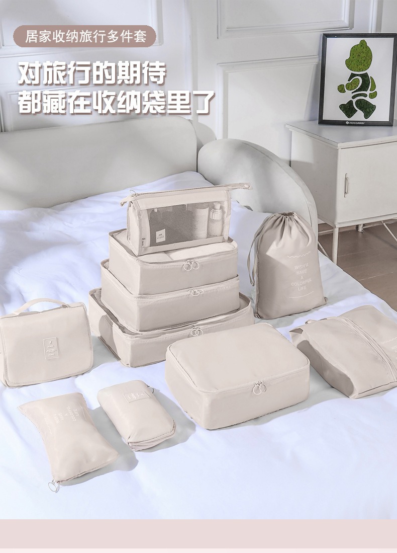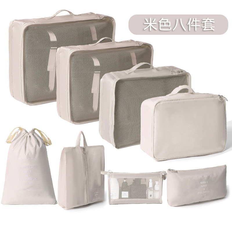 beige travel storage bag [8-piece cosmetic bag]]