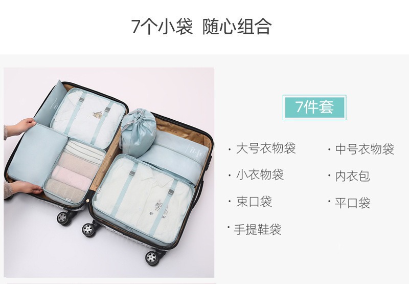 sky blue travel buggy bag seven-piece