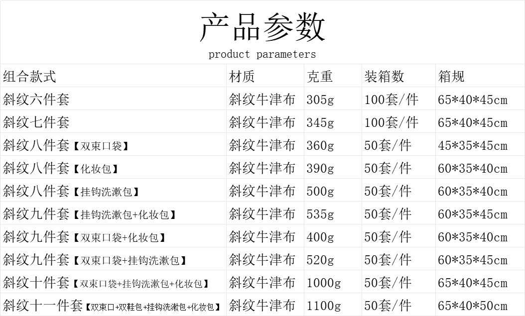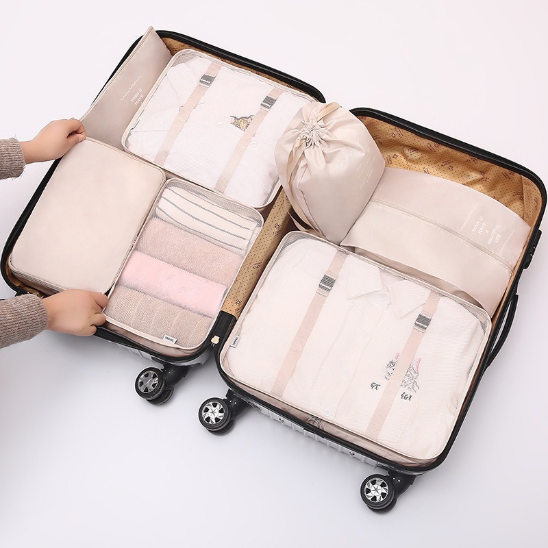 beige travel buggy bag seven-piece