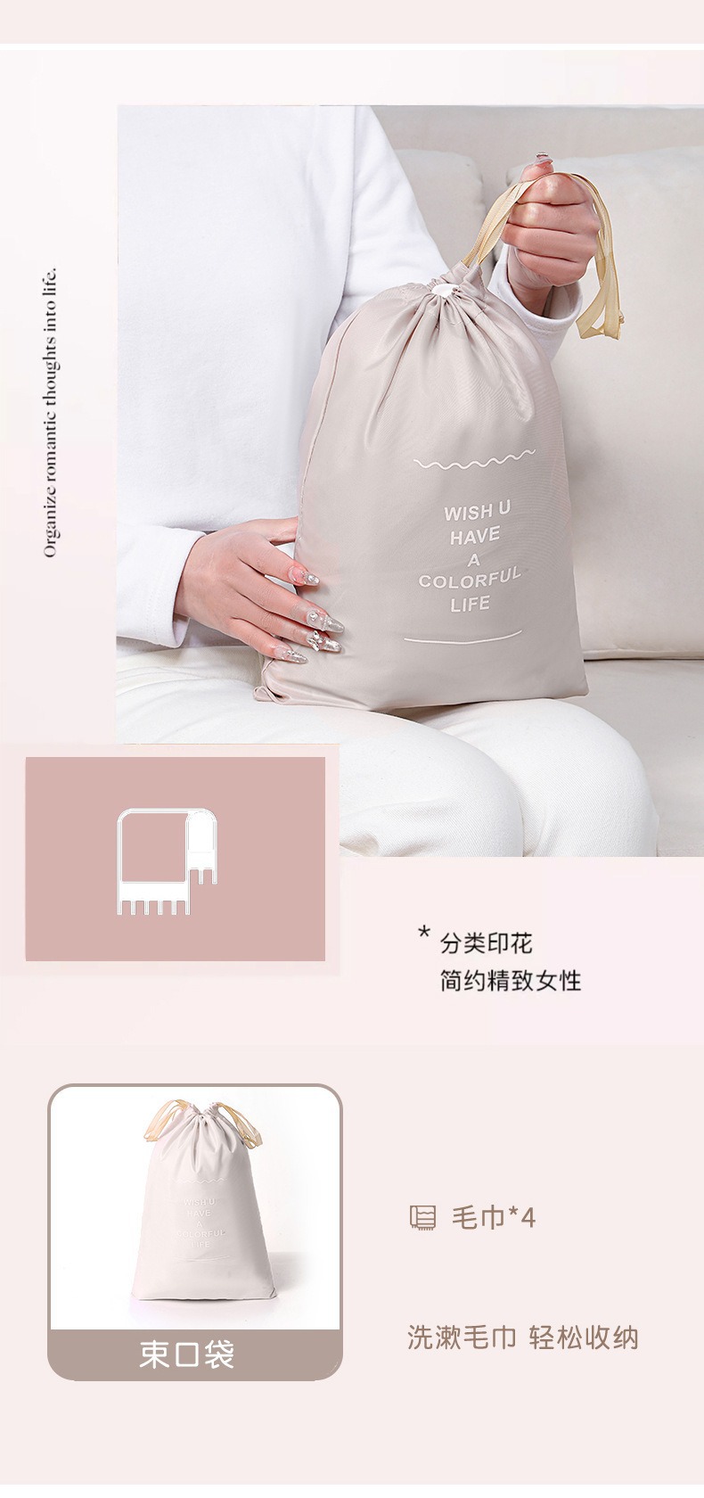 beige buggy bag [toiletry bag hung with hook eight-piece set]