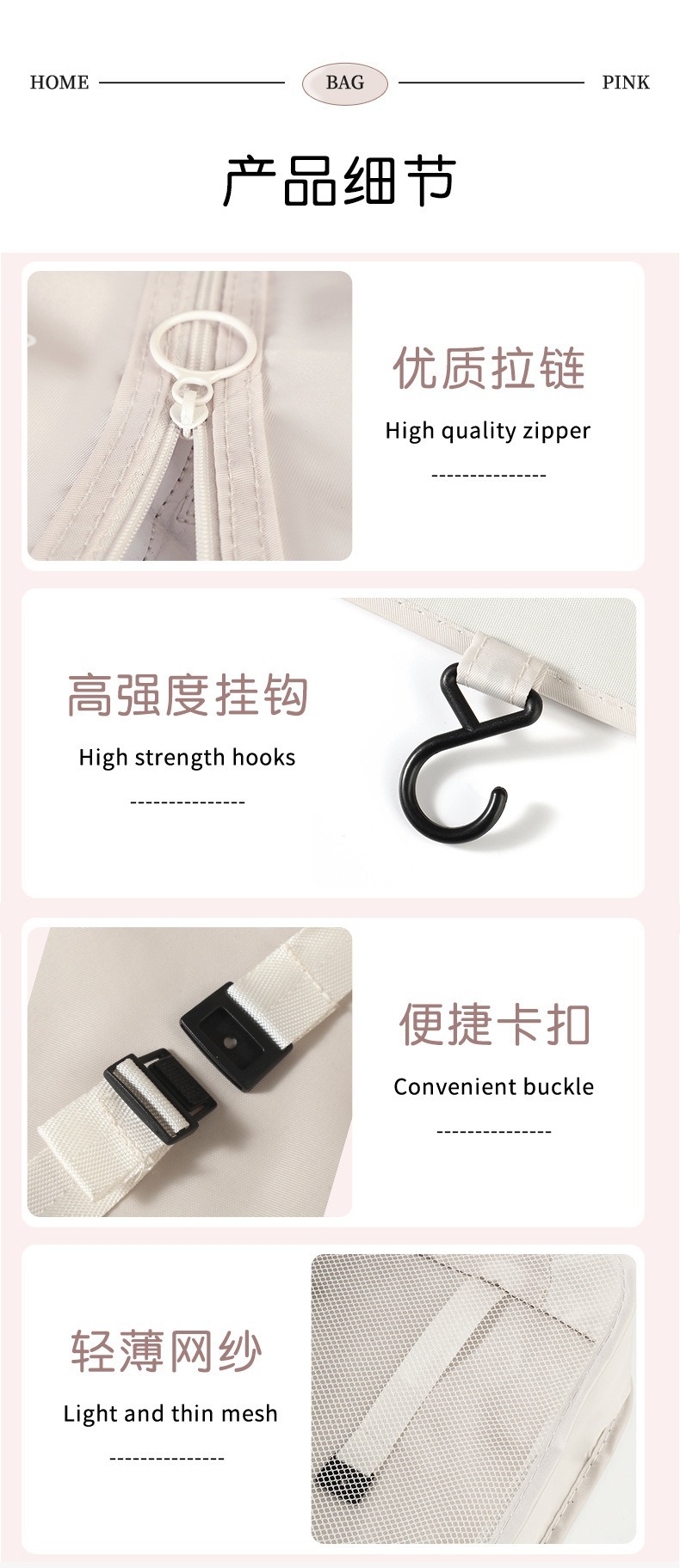 pink buggy bag for travel [toiletry bag hung with hook eight-piece set]
