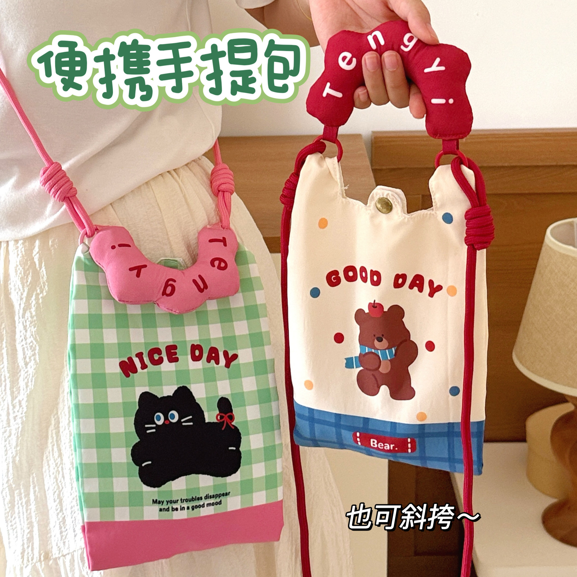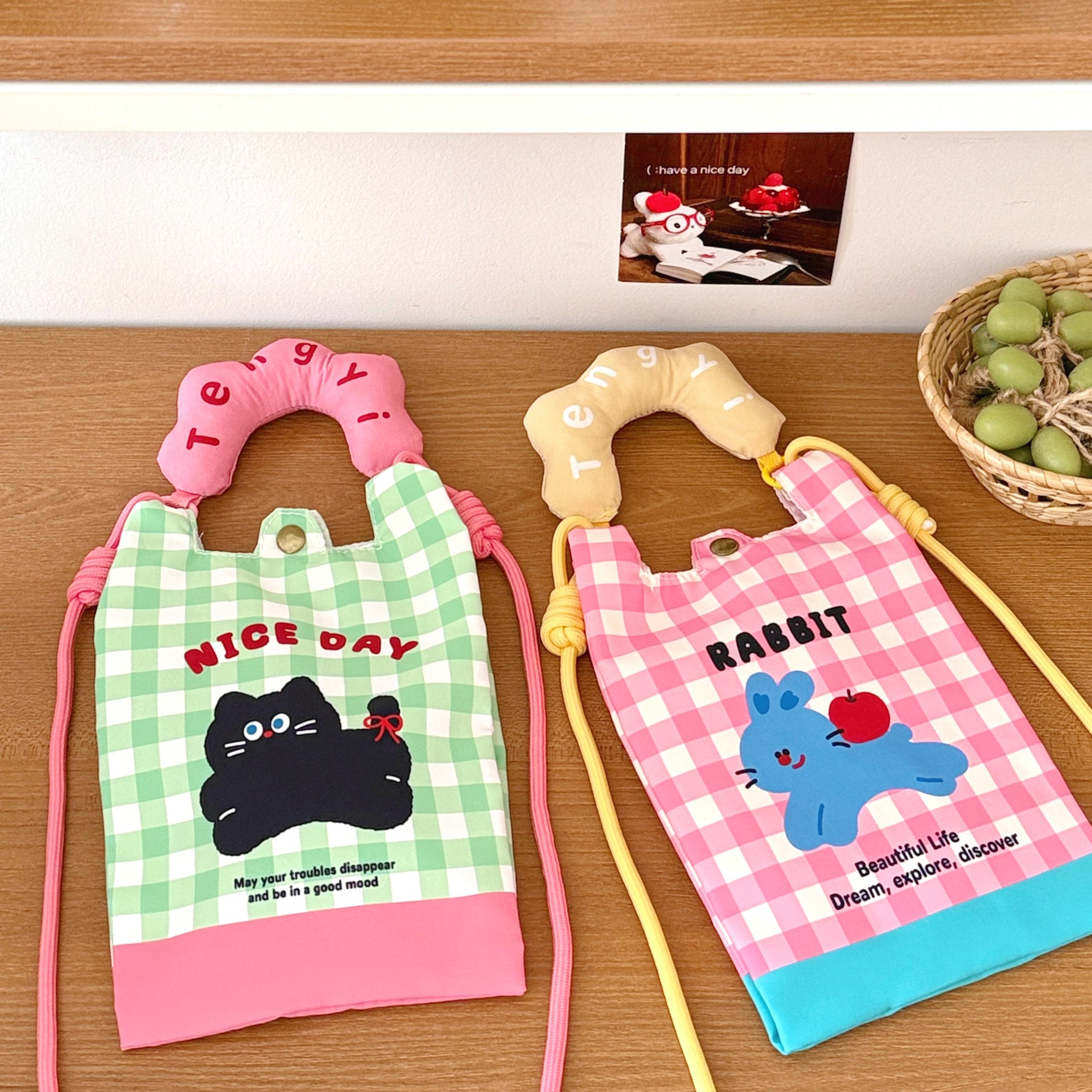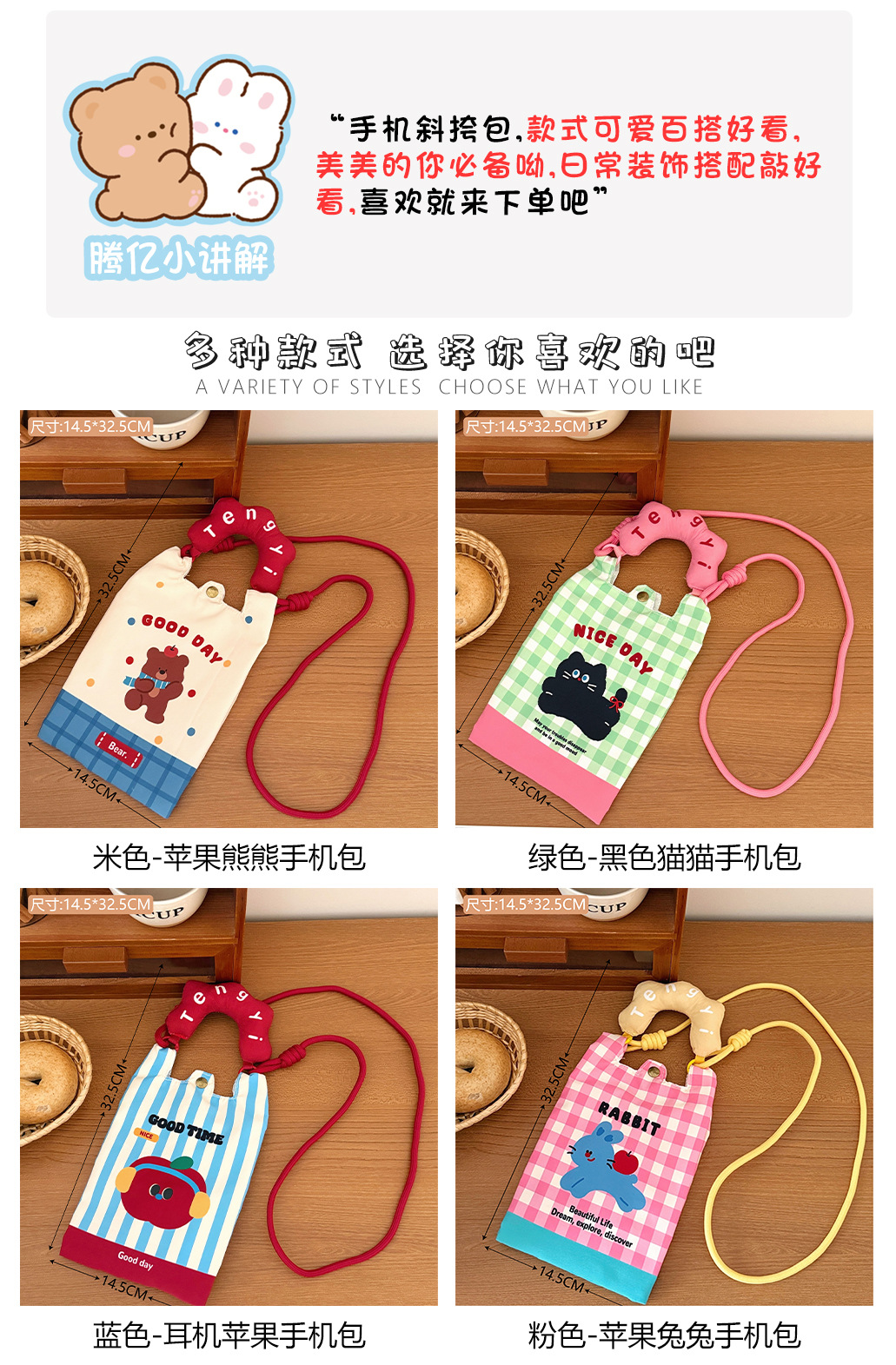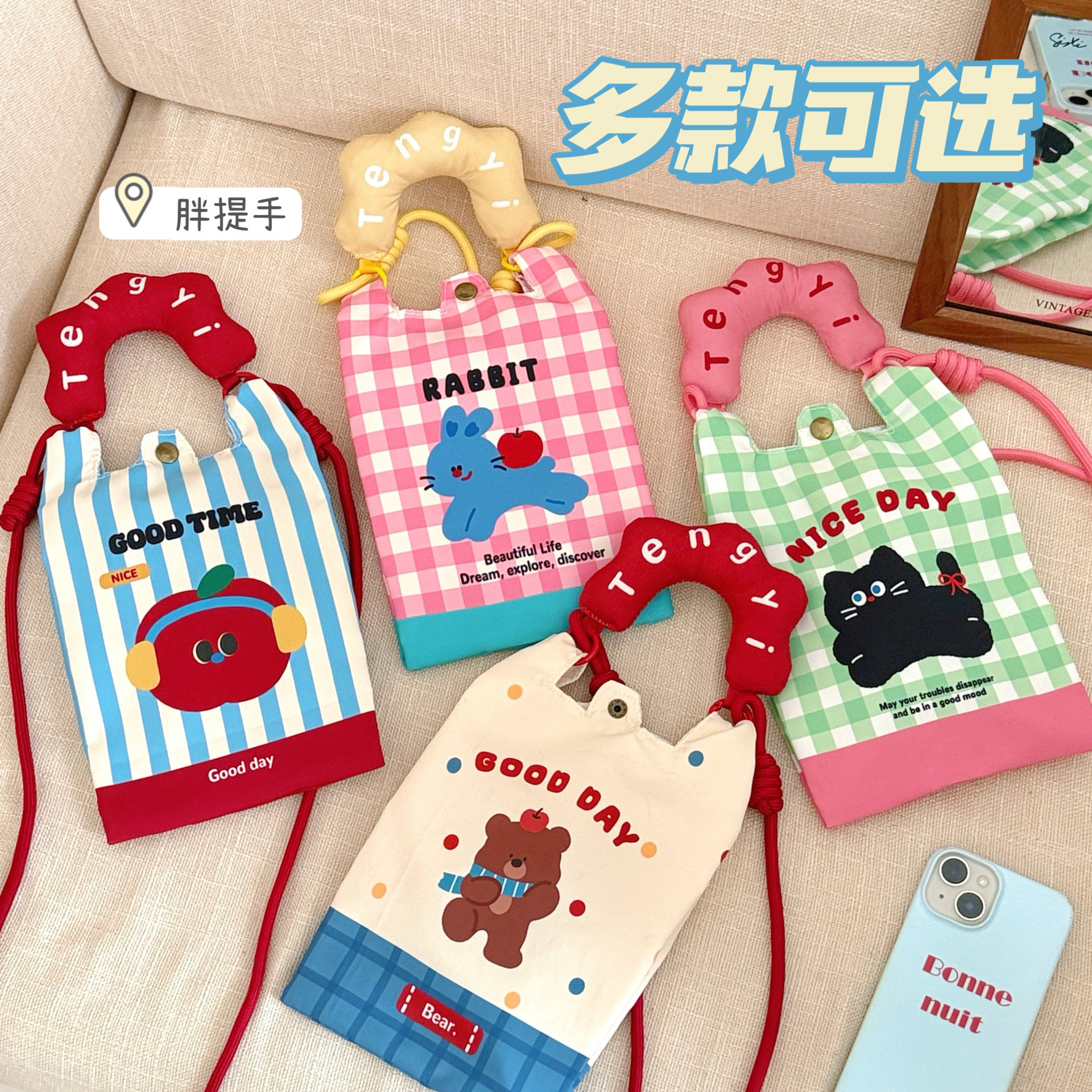 color: 2# green-black cat phone bag, 3# blue-headphones