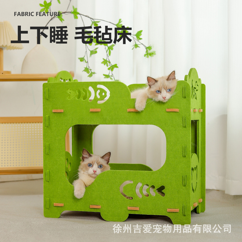 green single-deck pet bed