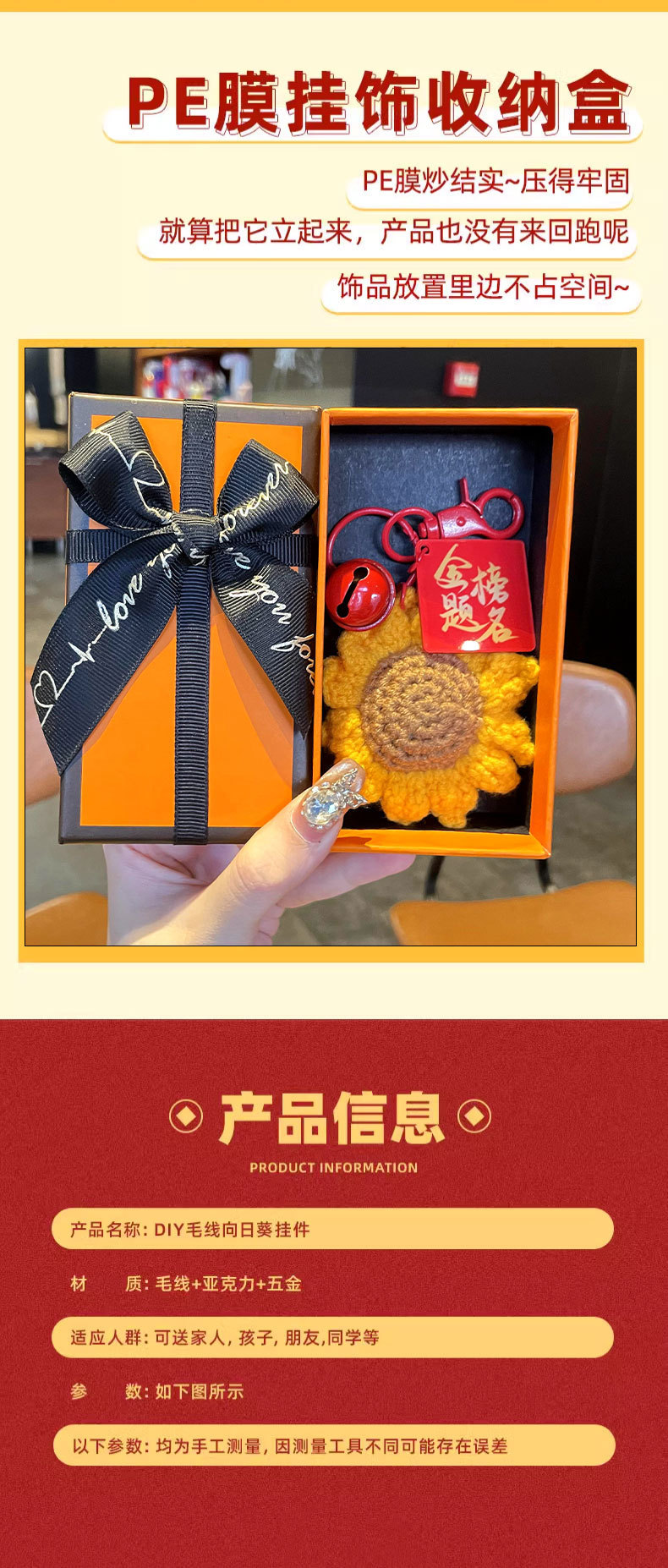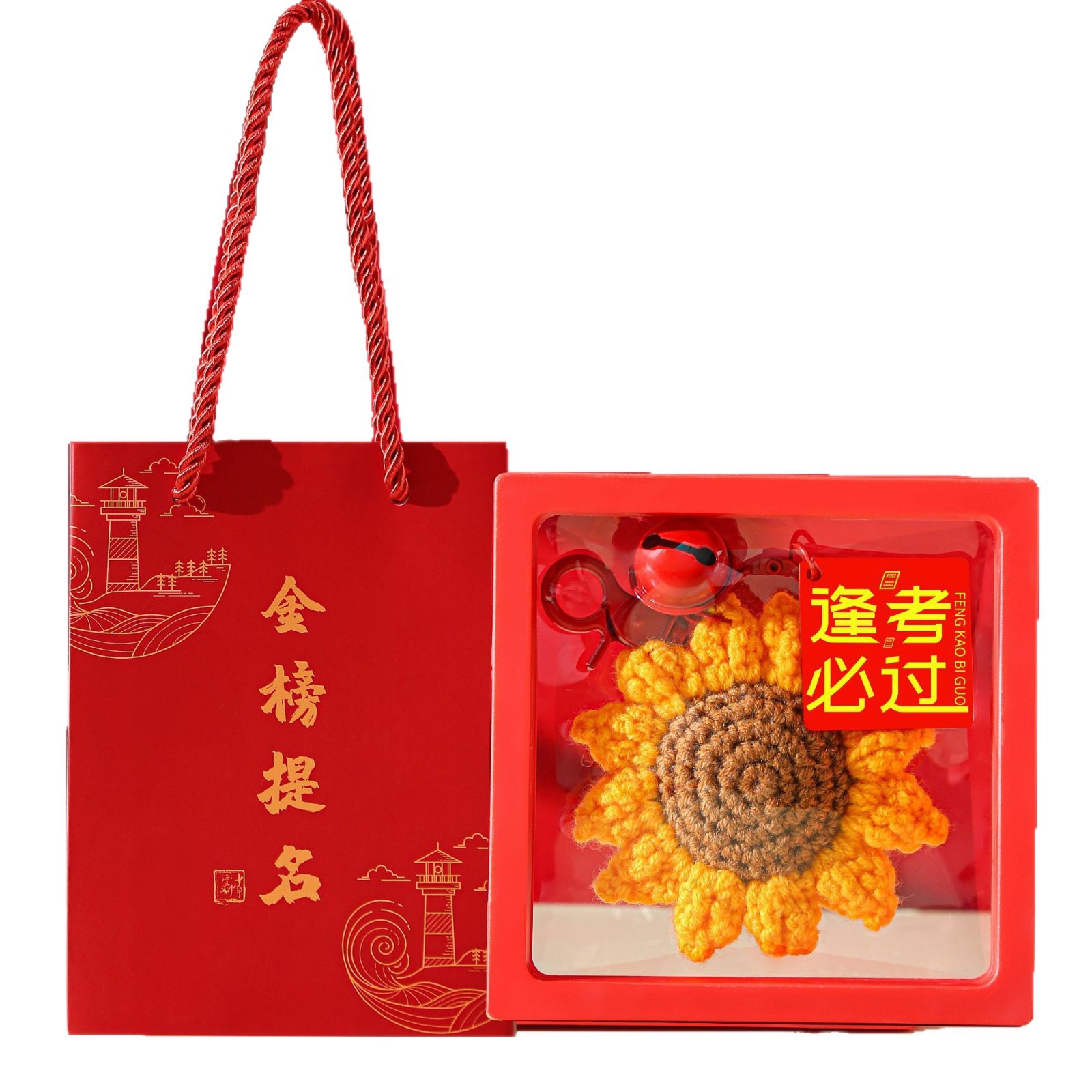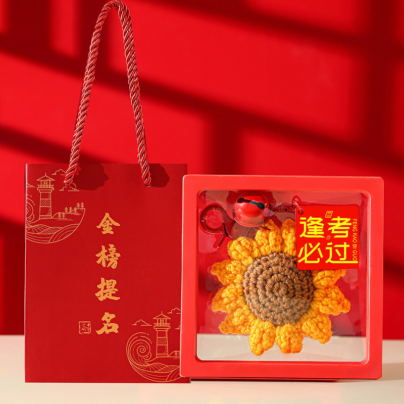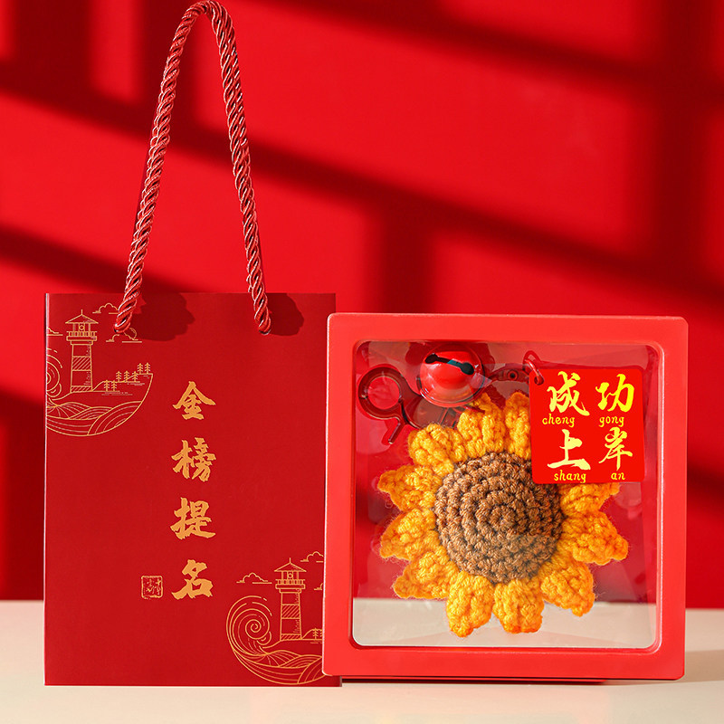 [keychain] yarn sunflower pendant★success on the imperial list + red floating box + golden list gift bag