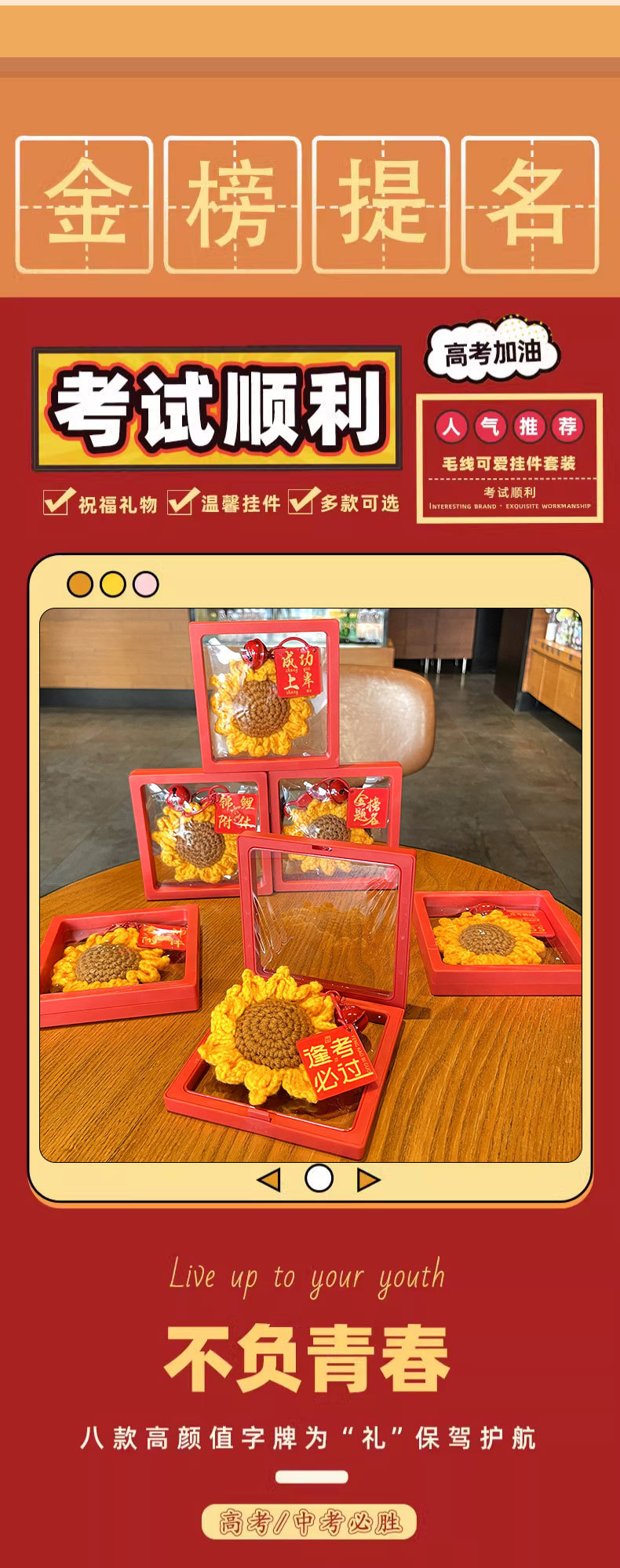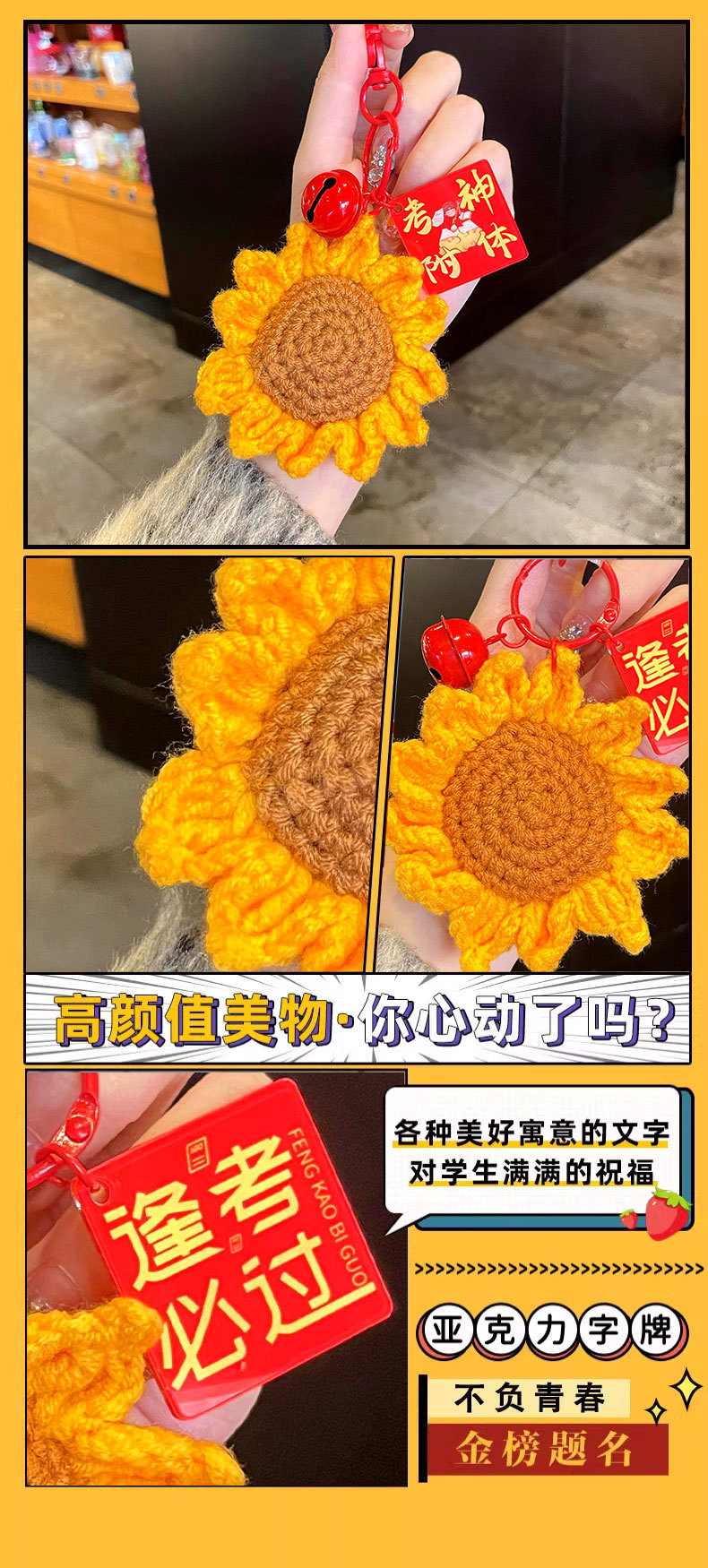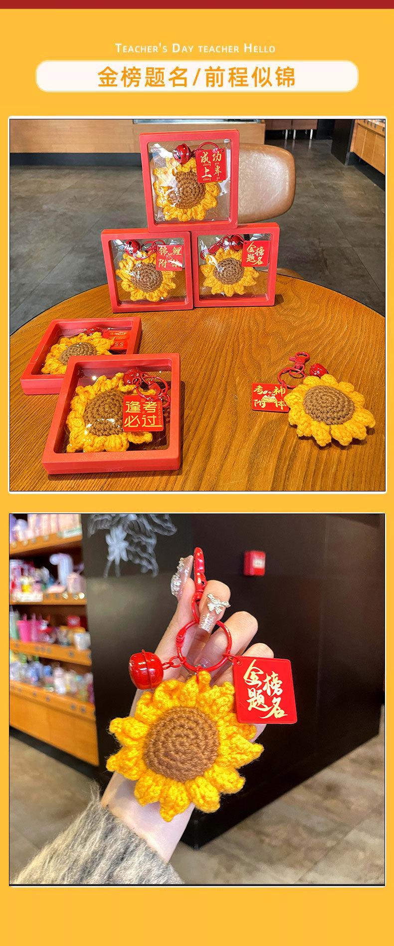 [keychain] yarn sunflower pendant★success on the imperial examination list + red floating box.