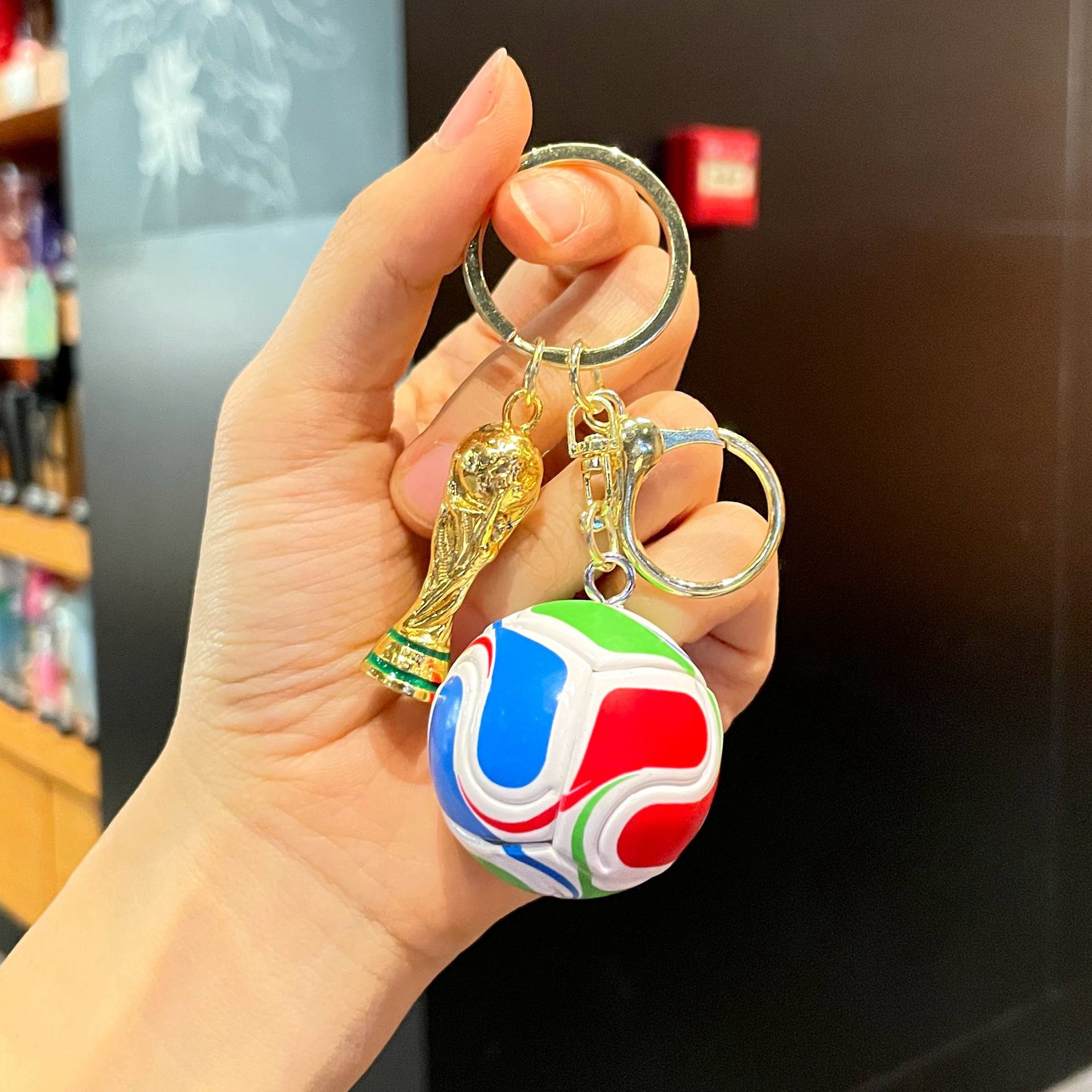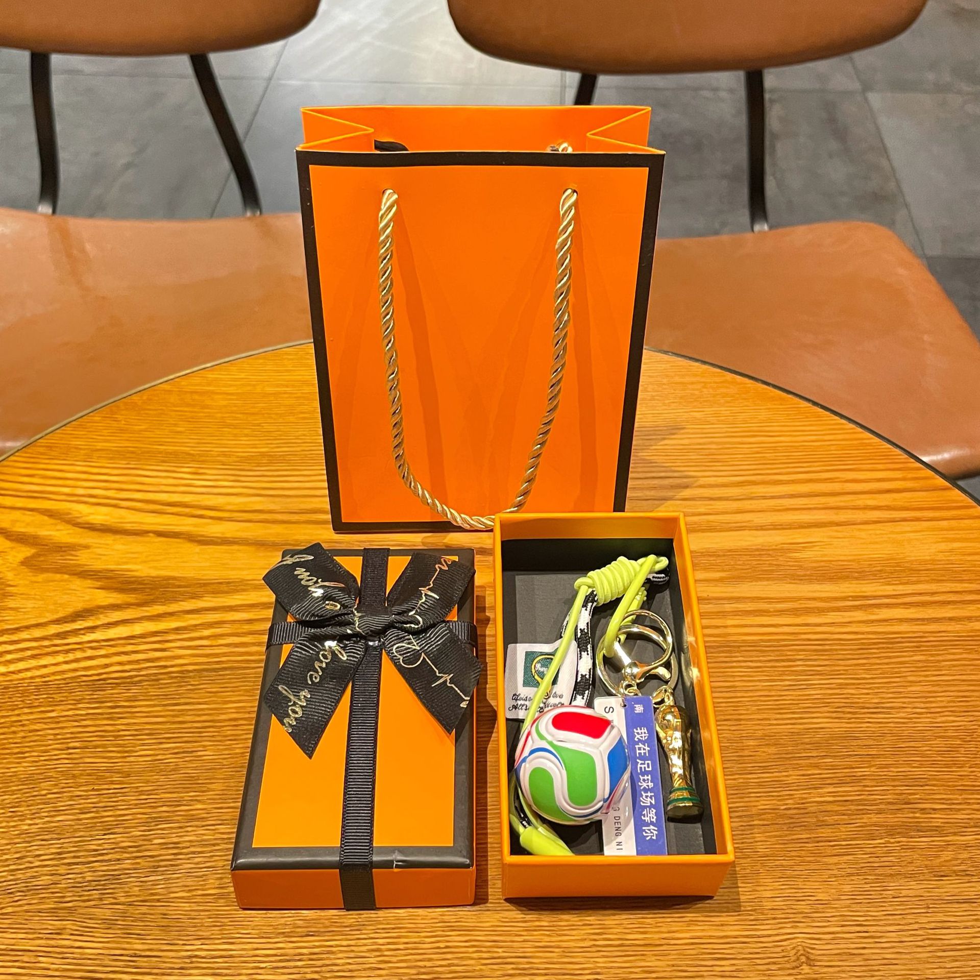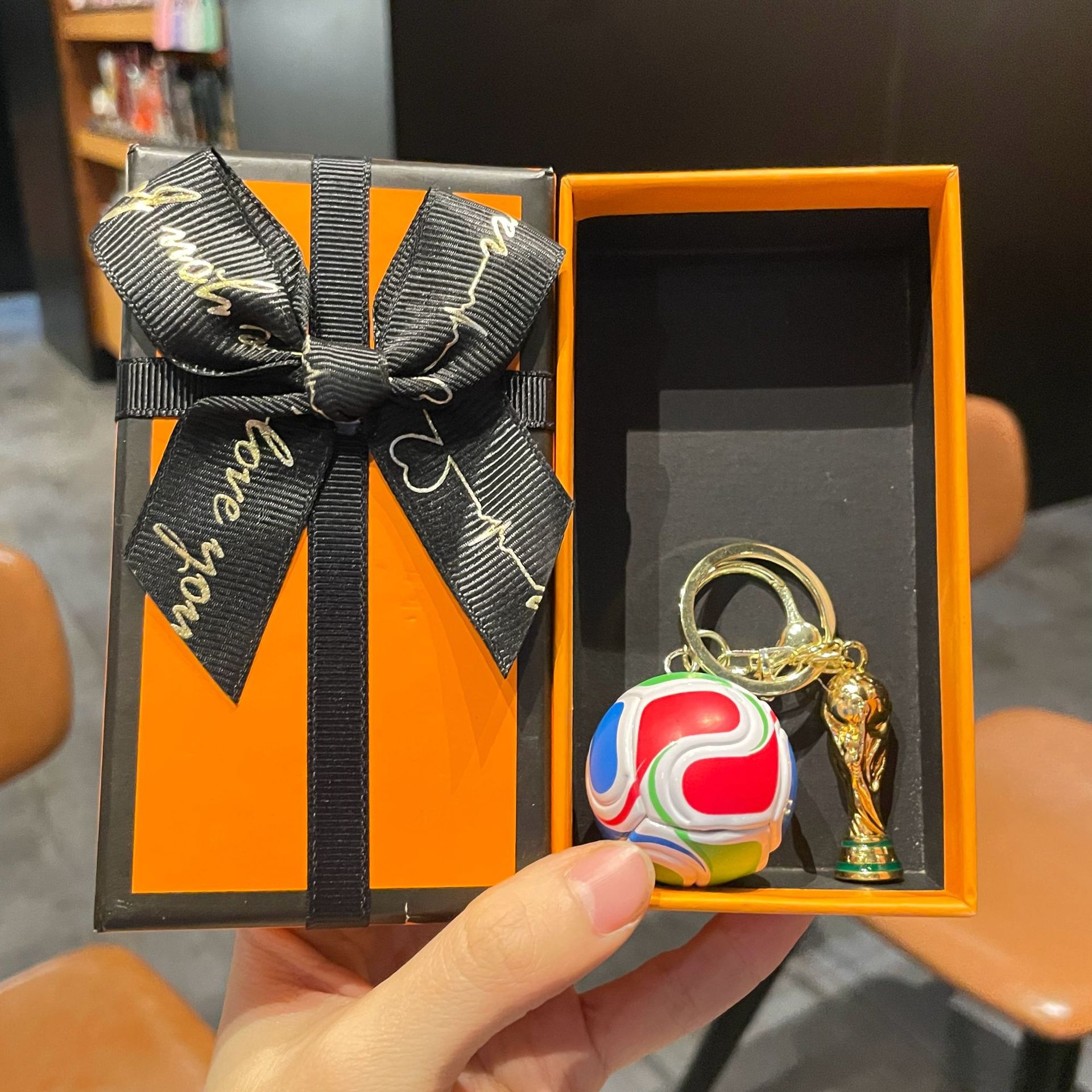 w5 world cup football + trophy + green miu rope + orange large size gift box
